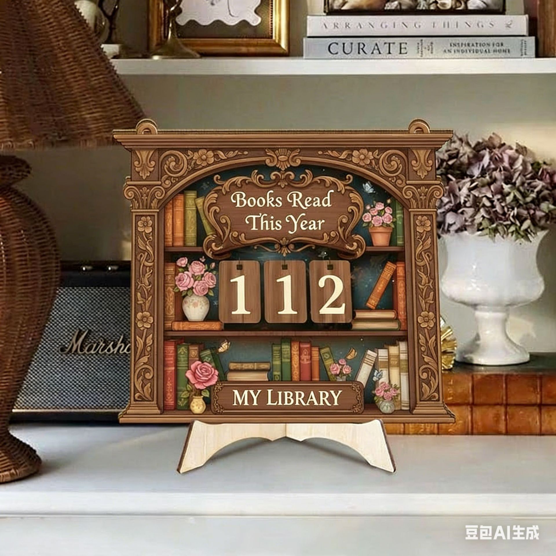 跨境亚马逊爆款2025阅读计数器木质工艺品挂件有趣书架配件装饰品
