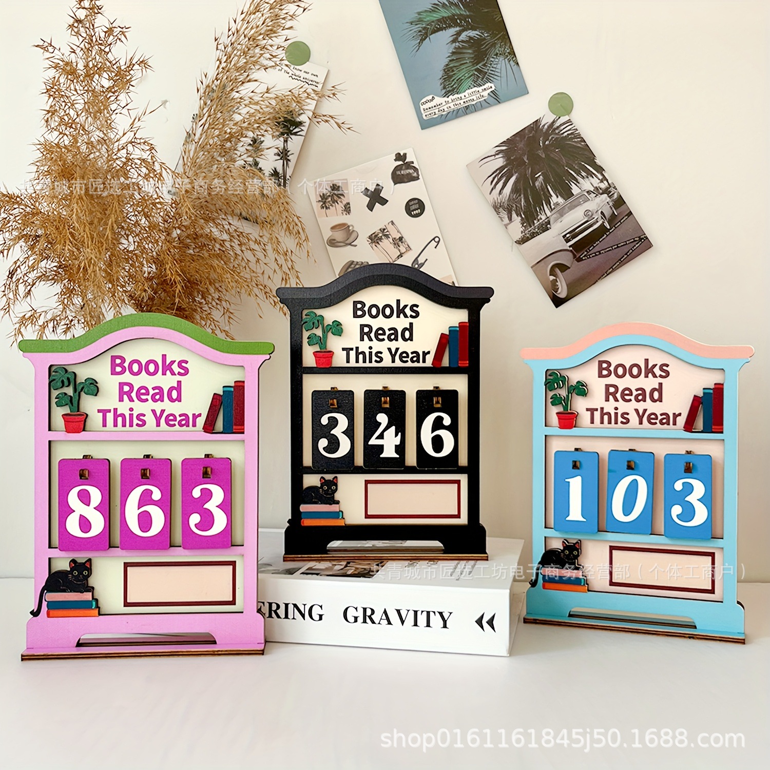 木质阅读计数器已读书本统计器桌面装饰摆件有趣台历木质工艺品绿