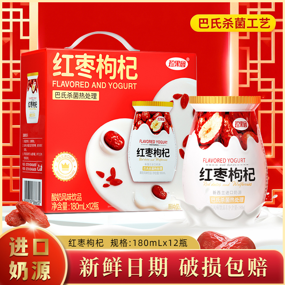 珍果园红枣枸杞180ml *12瓶风味酸奶礼盒款节庆过年送礼新鲜日期