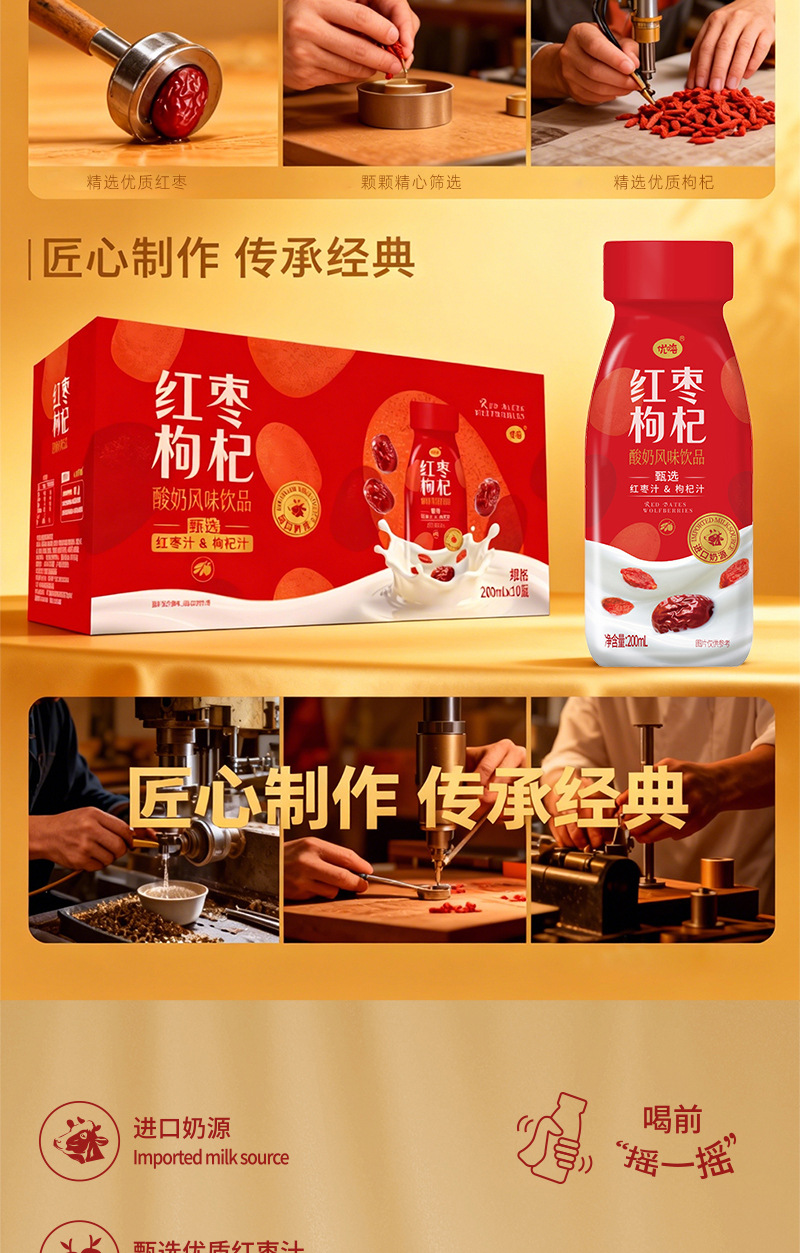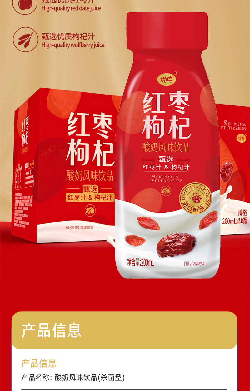 优嗨红枣枸杞风味酸奶200ml *10瓶礼盒款儿童营养早餐新年伴手礼
