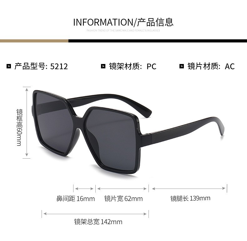大きなフレームのシンプルなファッションの正方形のサングラスの女性insネットの赤い街はサングラスの欧米の越境の潮流のサングラスをたたきます。