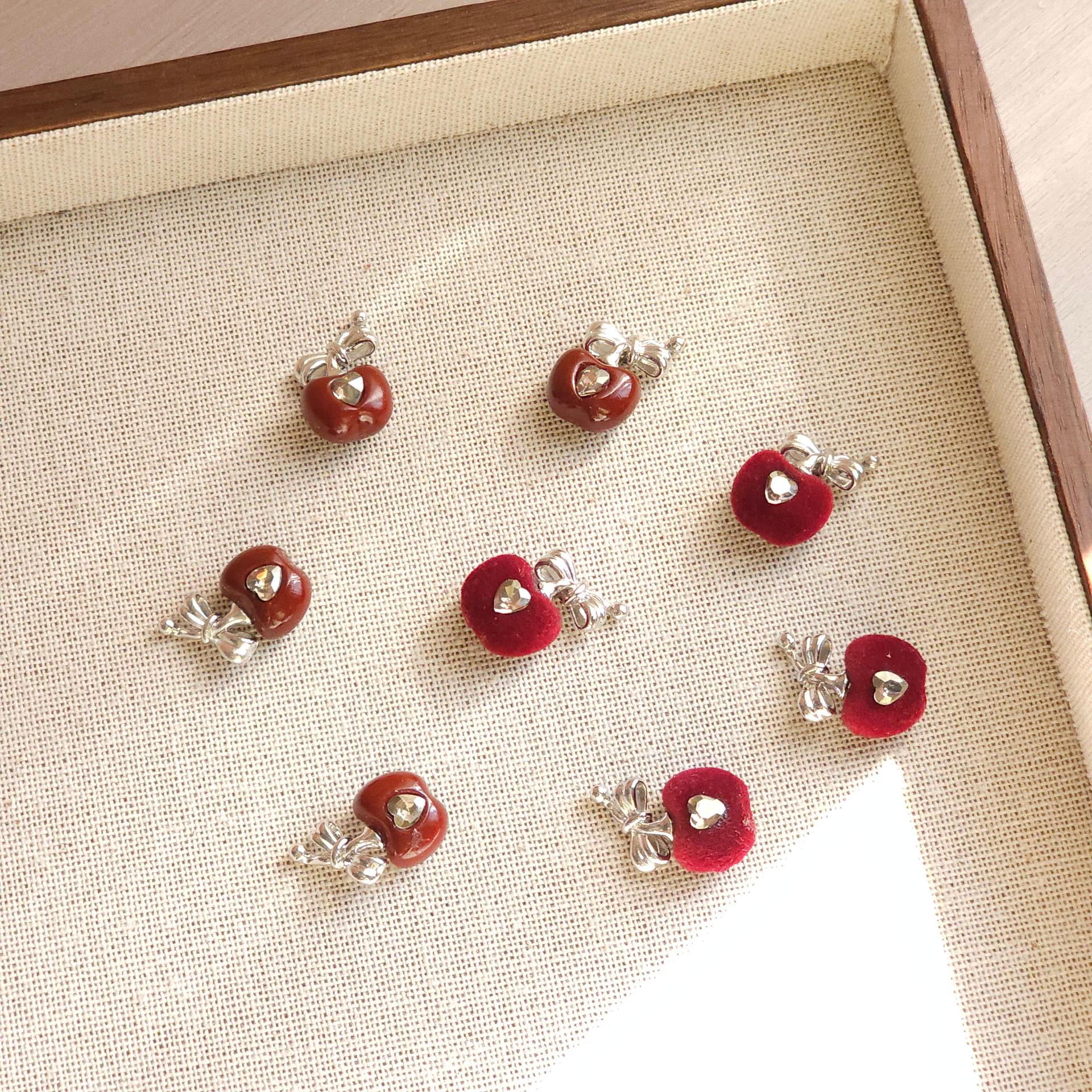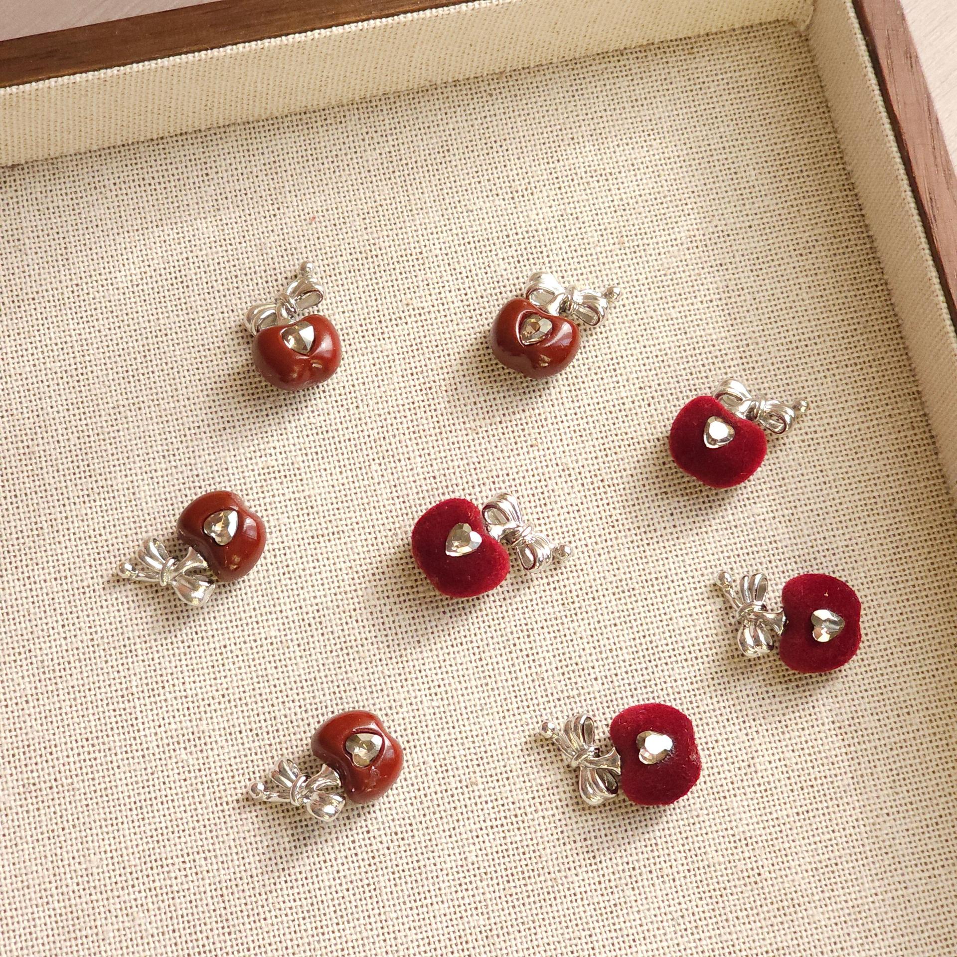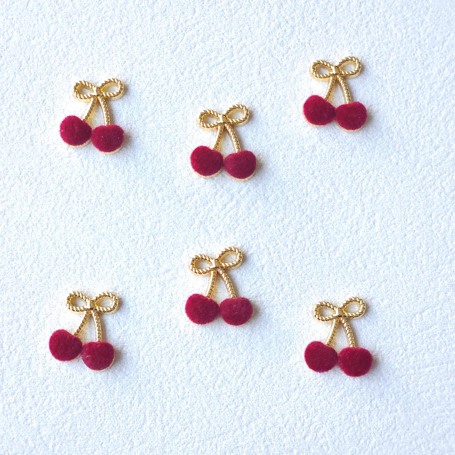 韩版甜美合金植绒樱桃贴片耳饰头饰发夹手机壳diy饰品配件材料