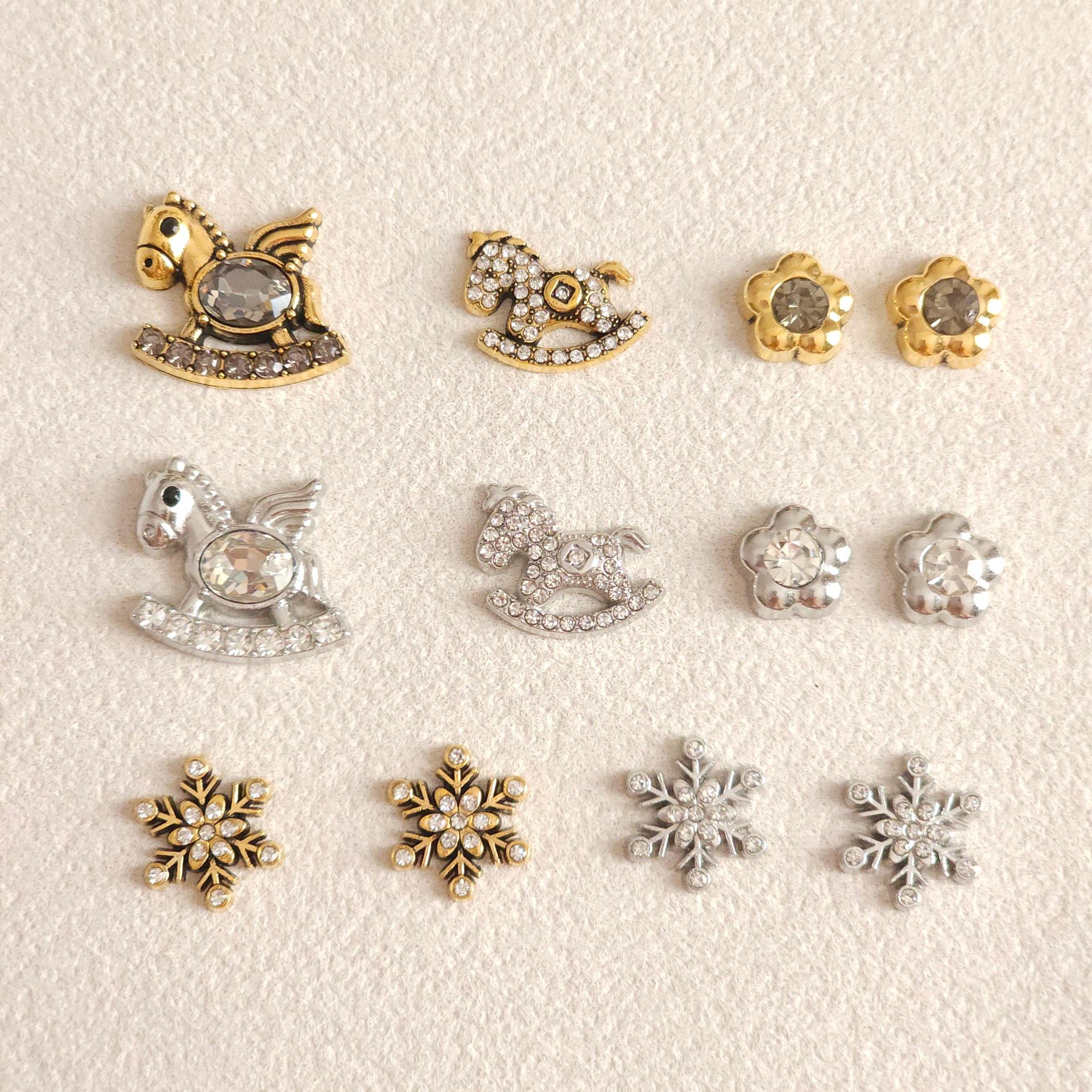 高级感轻奢镶钻合金摇摇马雪花片头饰发夹耳饰手机壳diy饰品配件