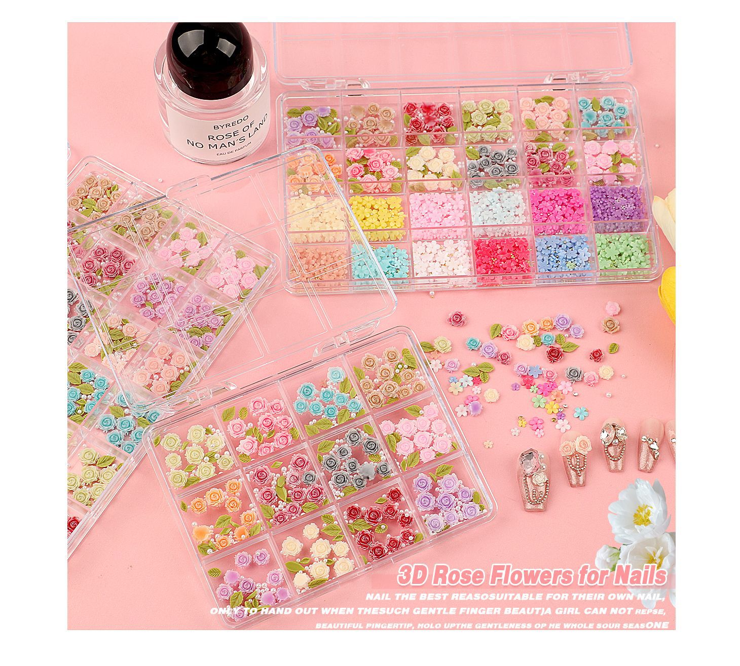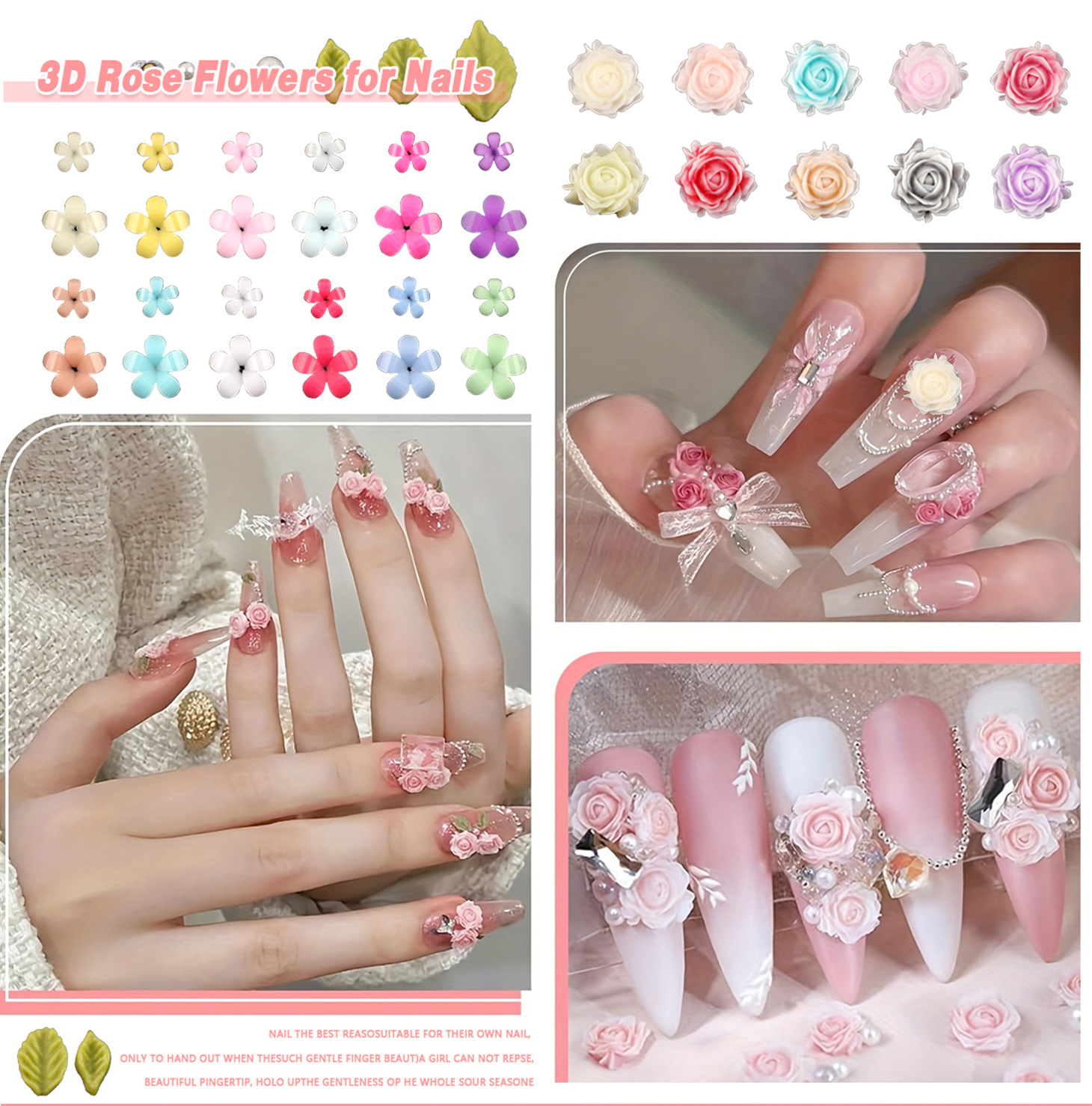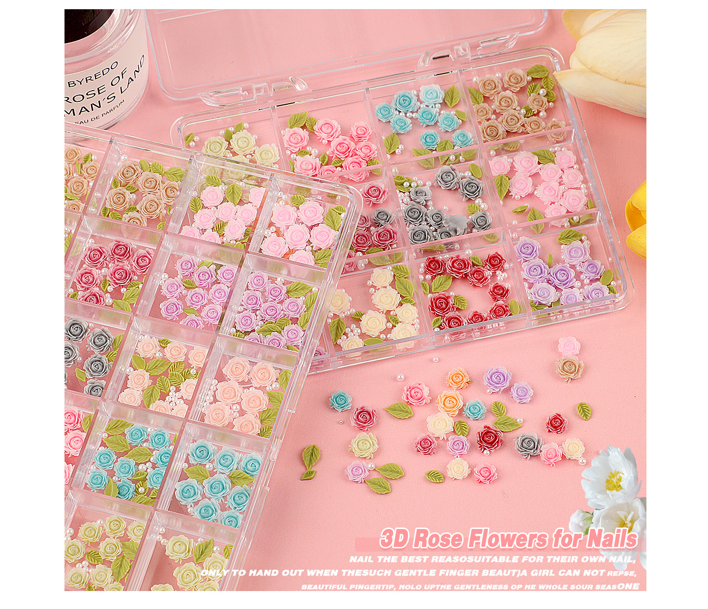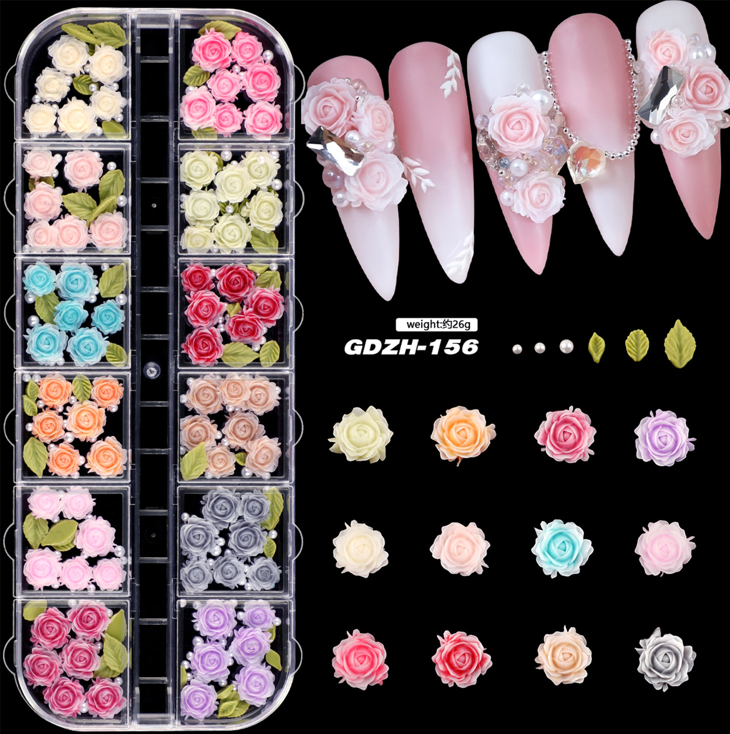 山茶花美甲饰品2025新款网红玫瑰花立体混装树脂穿戴甲装饰品批发