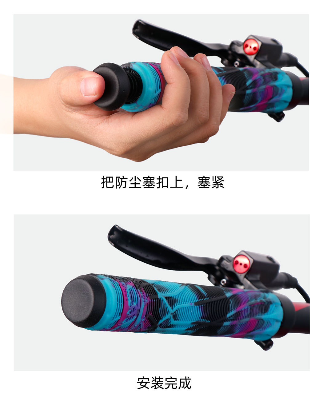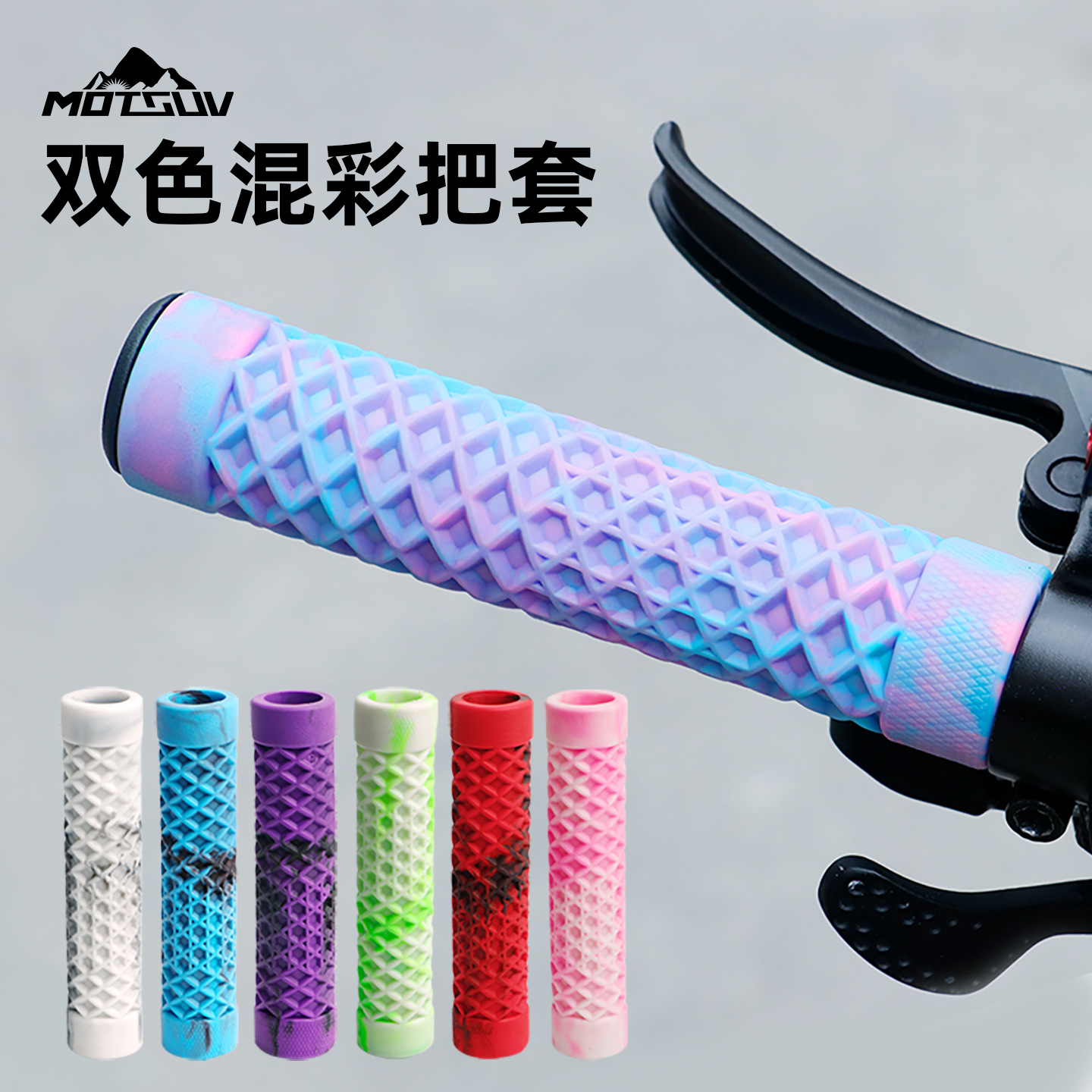 山地自行车把套 加厚防滑纹理双色混彩色直筒TPE骑行单车握把配件