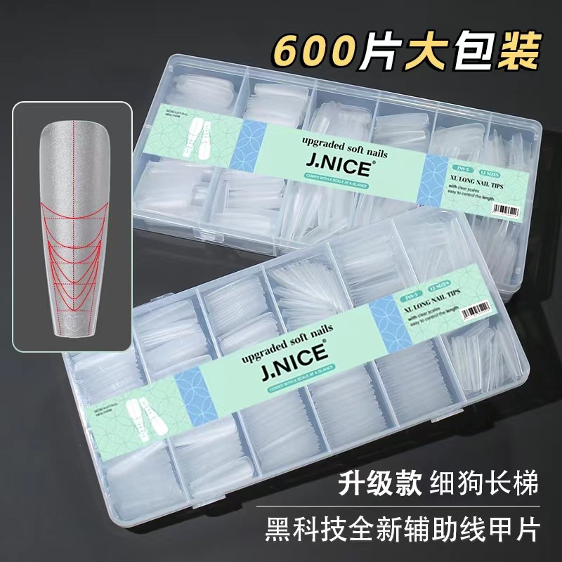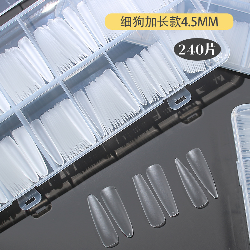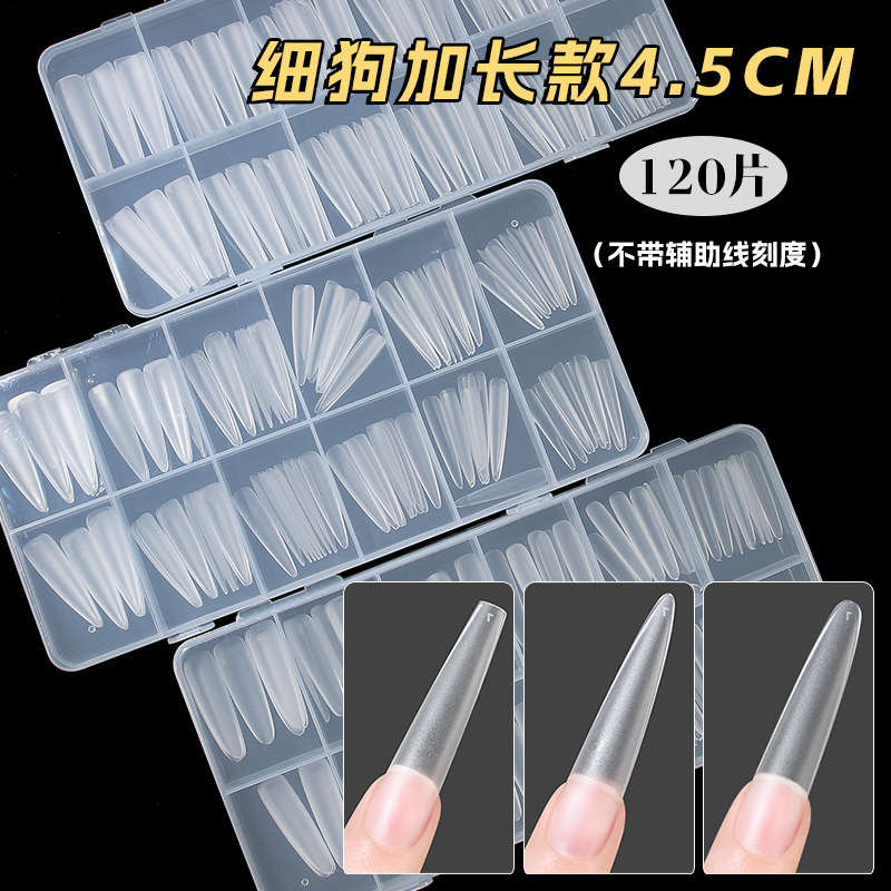 超长4.5细狗尖辅助线刻度甲片全半贴无痕磨砂免刻磨延长指甲贴片