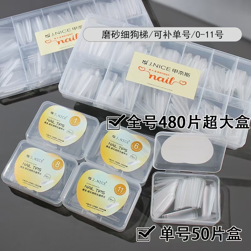 ネイルサロン専用の新型ネット赤全貼り半貼り無痕超薄フロスト無刻磨長長尺犬t形甲片