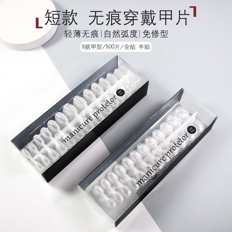 500枚の無傷超薄無刻着用甲全貼り半貼り美甲店専用フロスト短爪シール