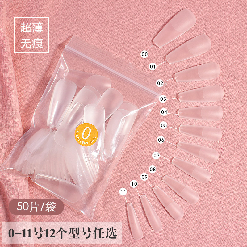 ネイル延長超薄平弧甲片フロスト無痕長楕円台形着用偽爪シール美甲店用