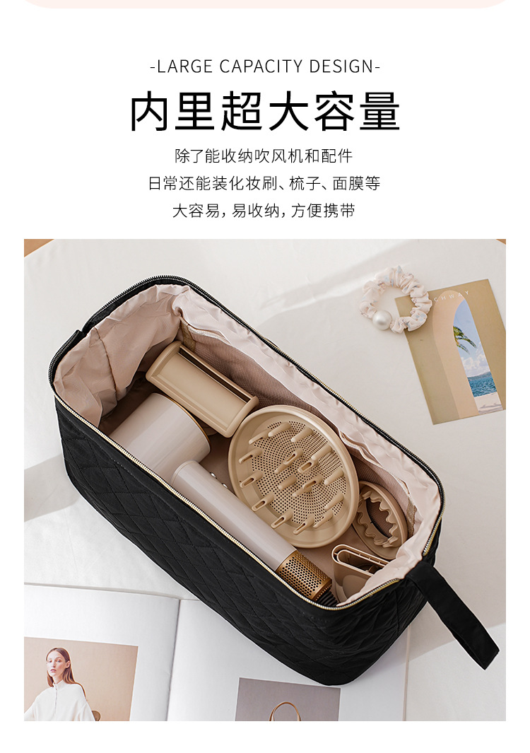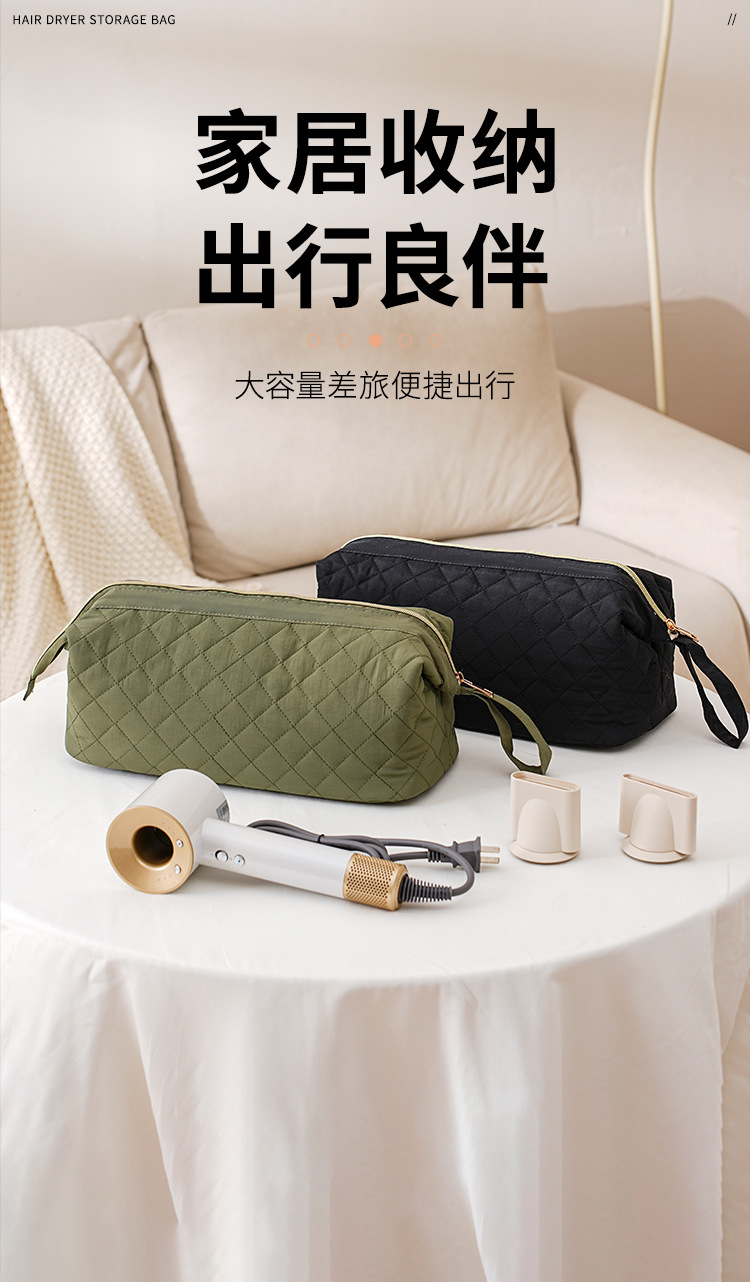 跨境吹风机收纳包大容量收纳袋绗缝夹棉便携式手提卷发棒收纳包