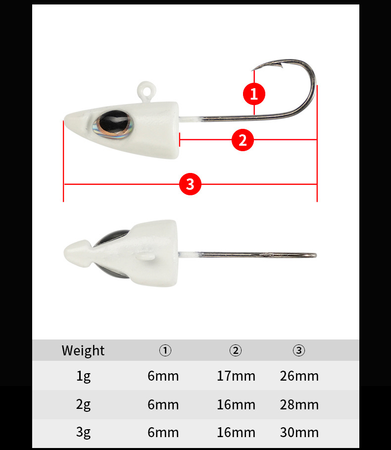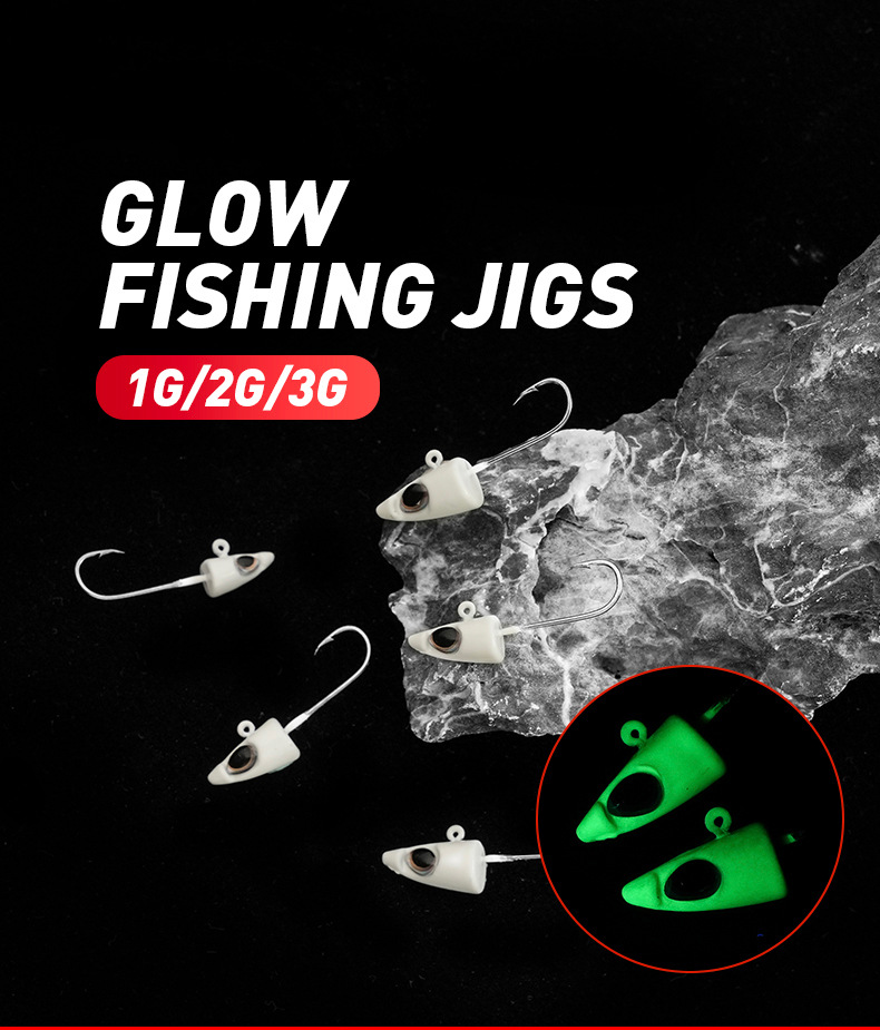メーカー卸売鉛頭フック、根釣りフック、マイクロ夜光3D魚眼鉛頭フック1gルアーフック、強化小型金フック
