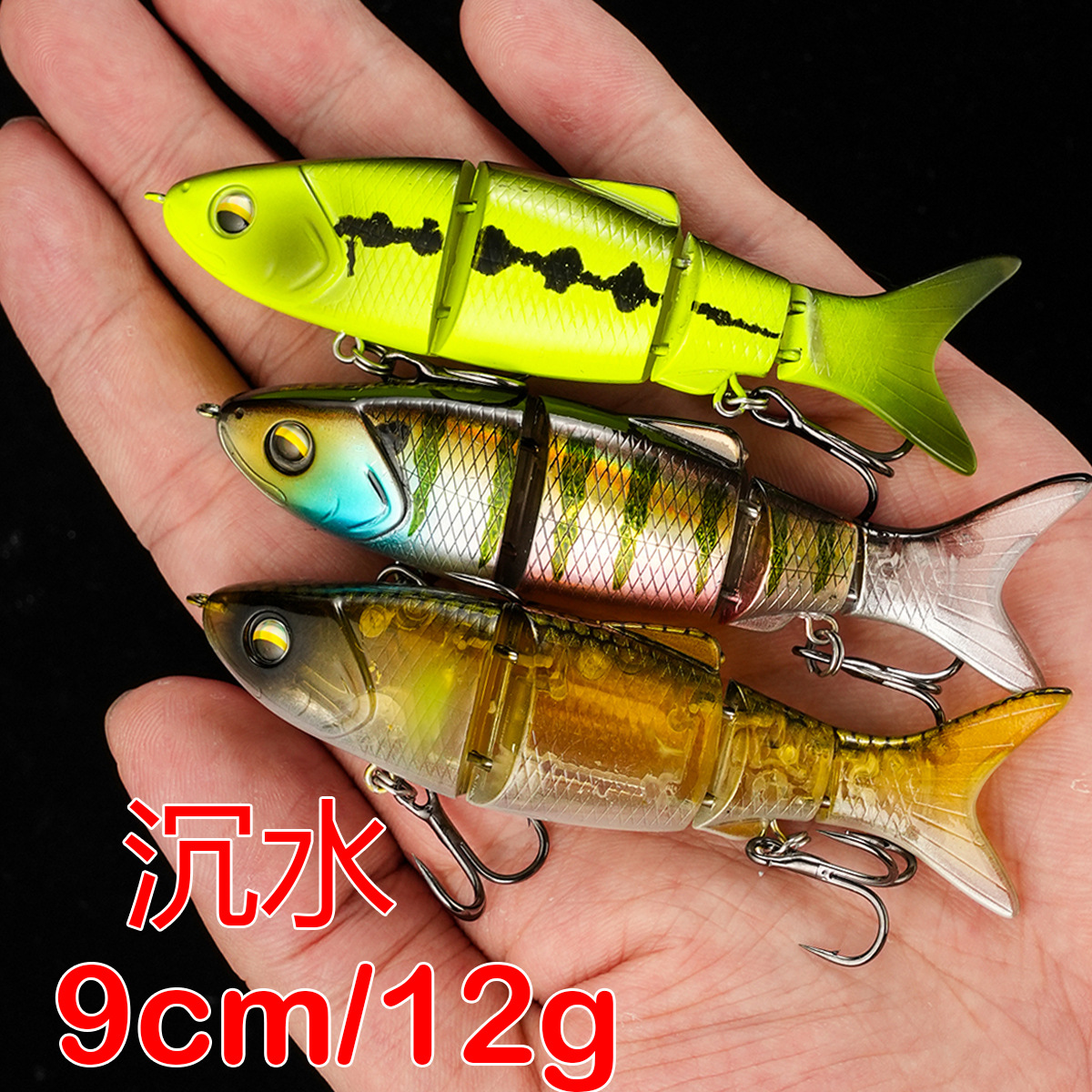 9cm/12g沉水多节鱼路亚渔饵野钓仿真鱼饵鲈翘嘴专用鲈鱼黑鱼军鱼