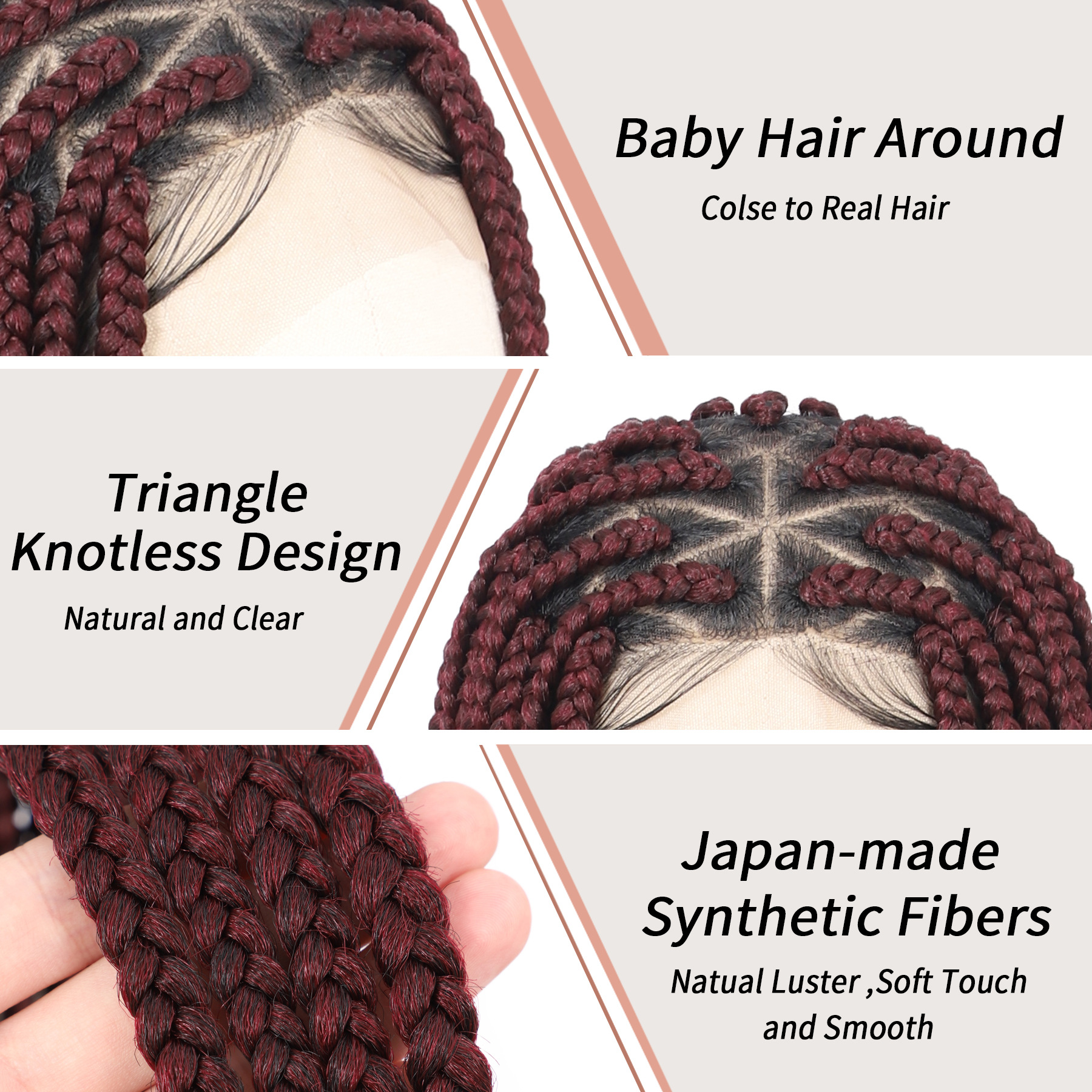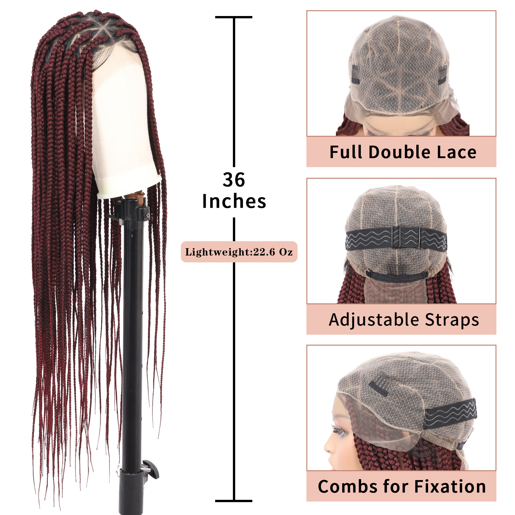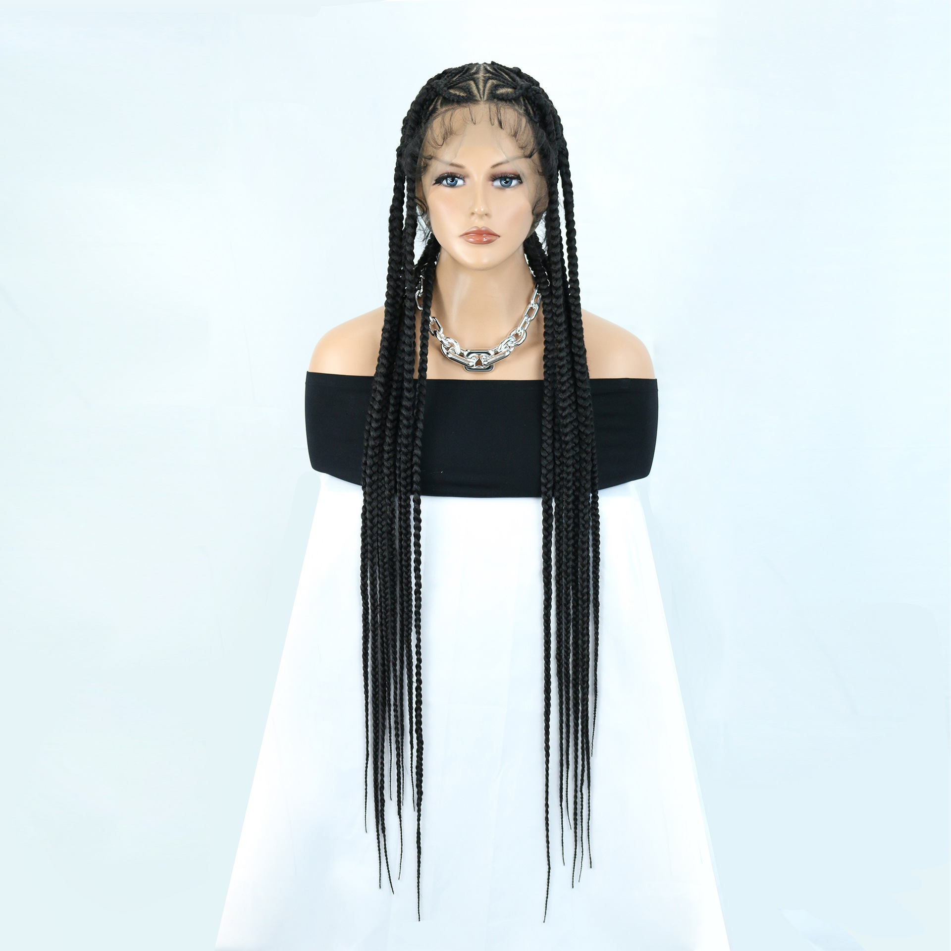 36 'フルレース編み込みウィッグ女性のための結び目のない編み込みウィッグベビーヘアボックス状編み込みウィッグ