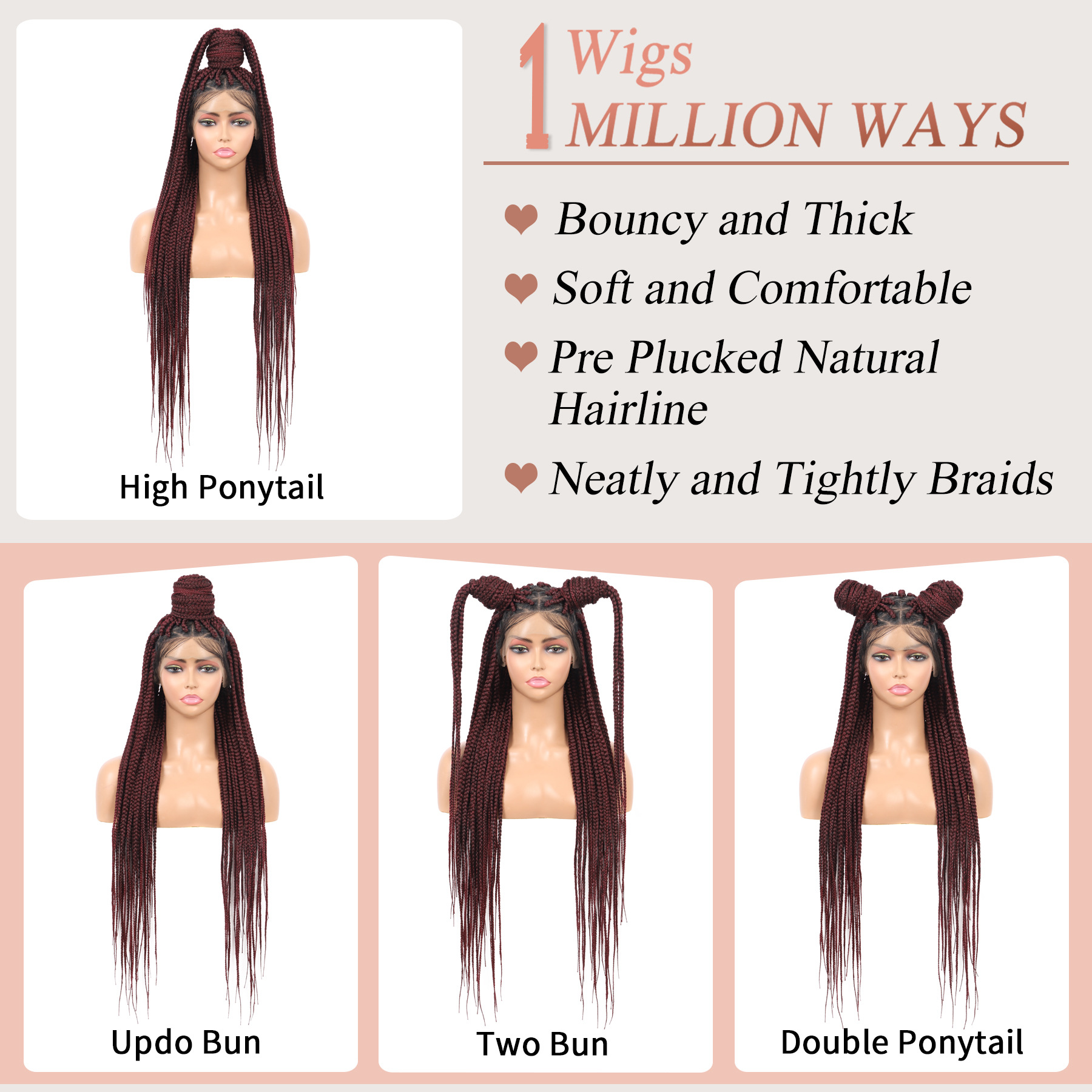 爆火款全蕾丝全手钩地垄沟辫子头套 LACE Braids Wig