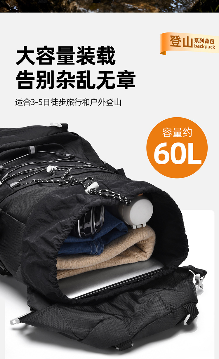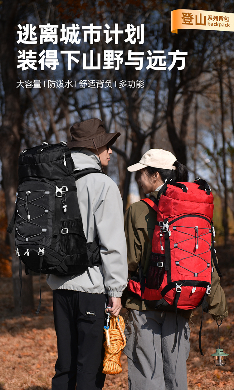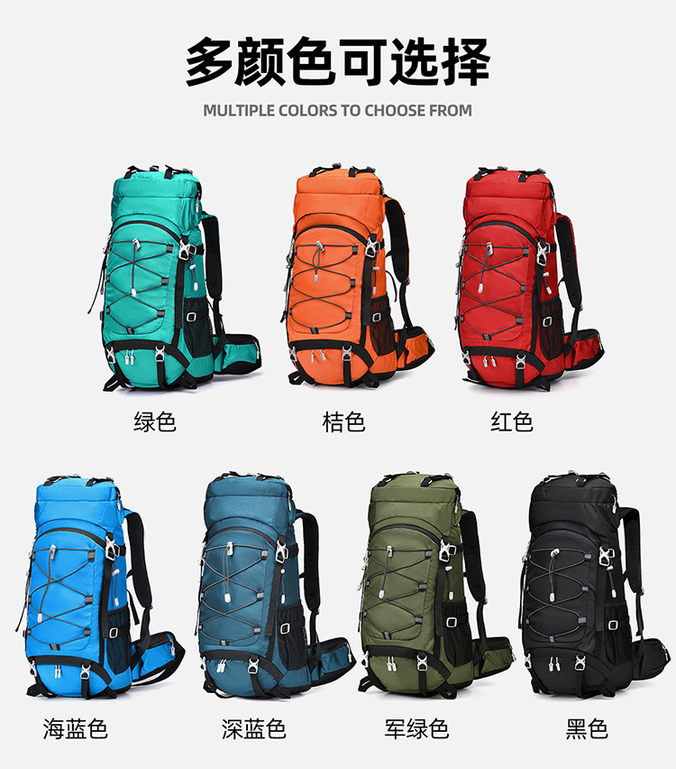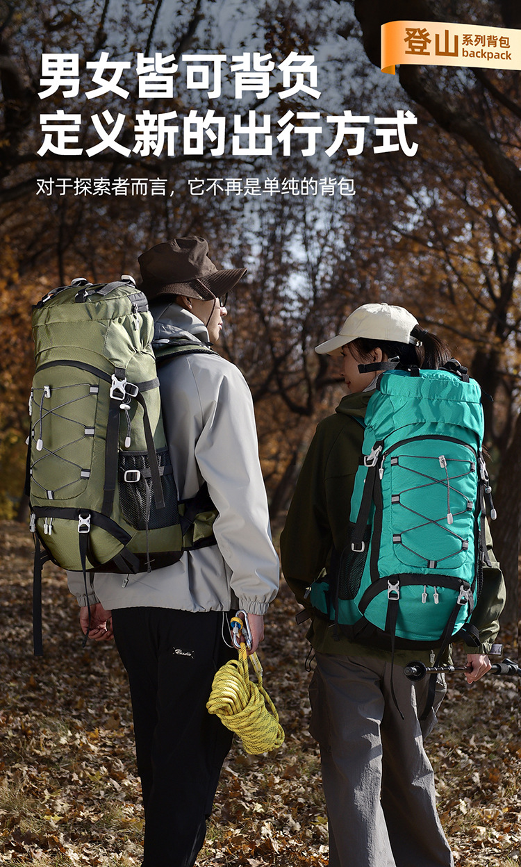 多功能60L越野旅行登山包户外大容量防泼水露营背包徒步远足包