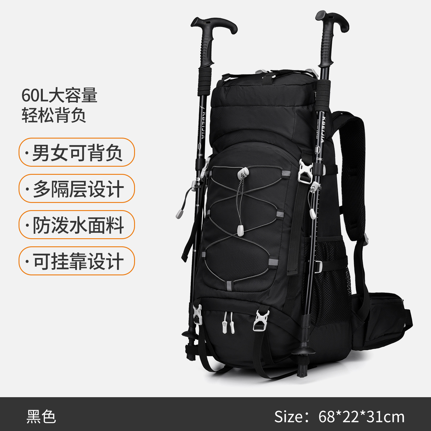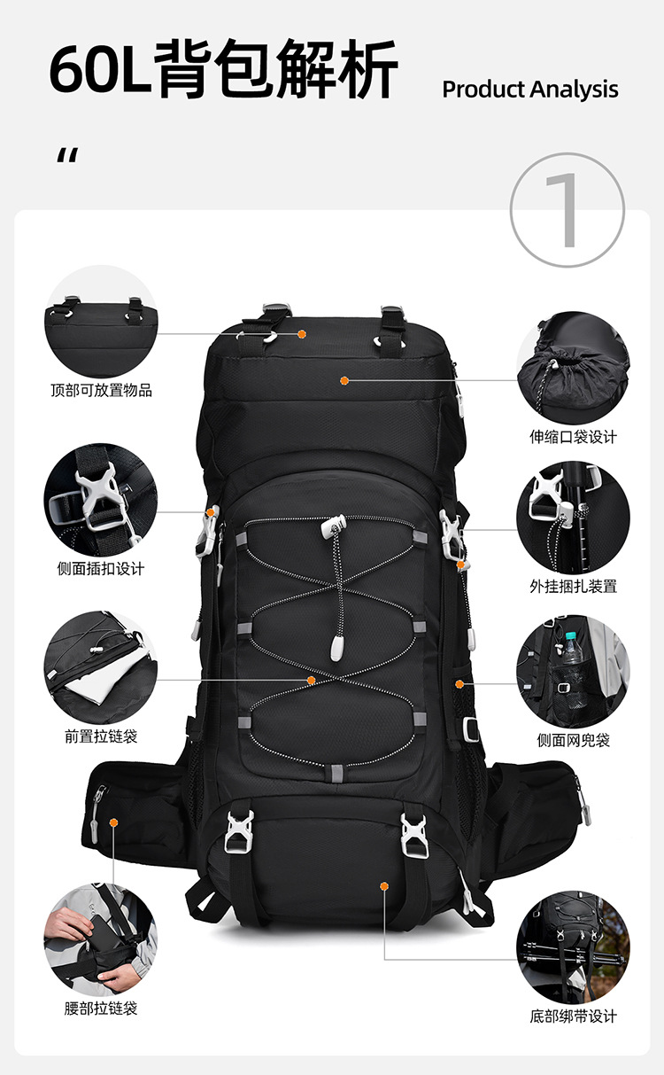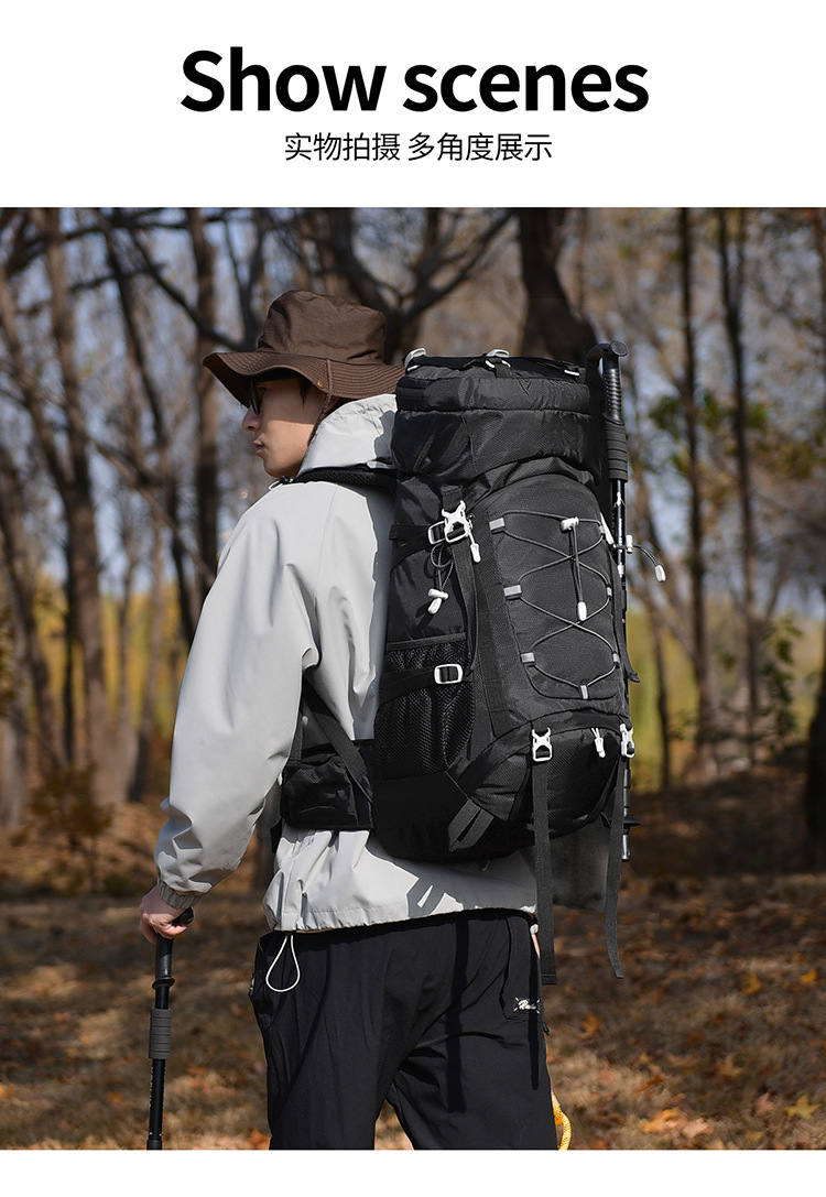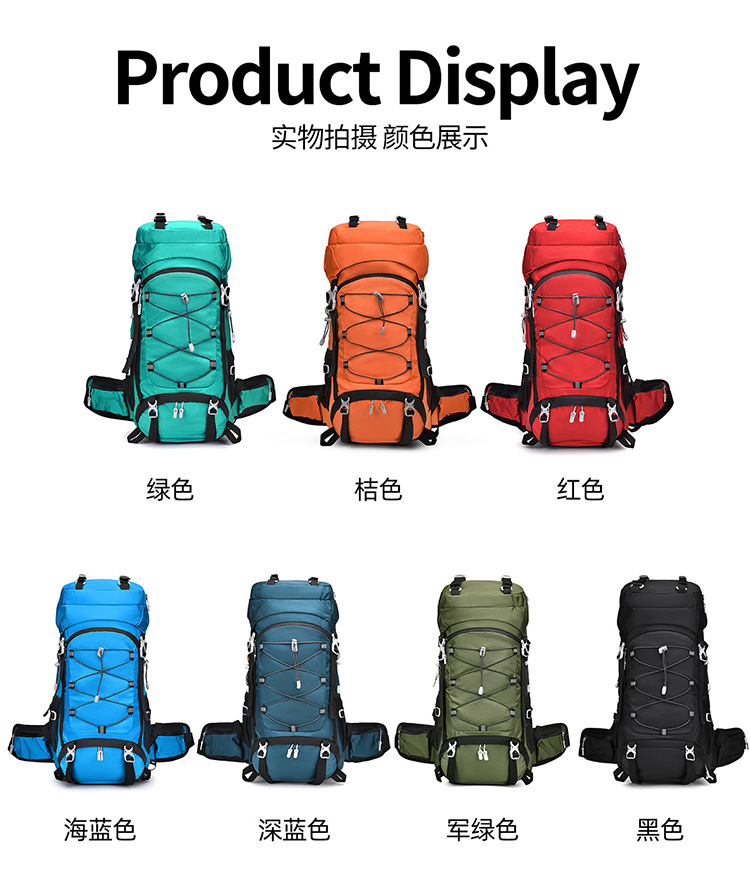 多功能60L越野旅行登山包户外大容量防泼水露营背包徒步远足包
