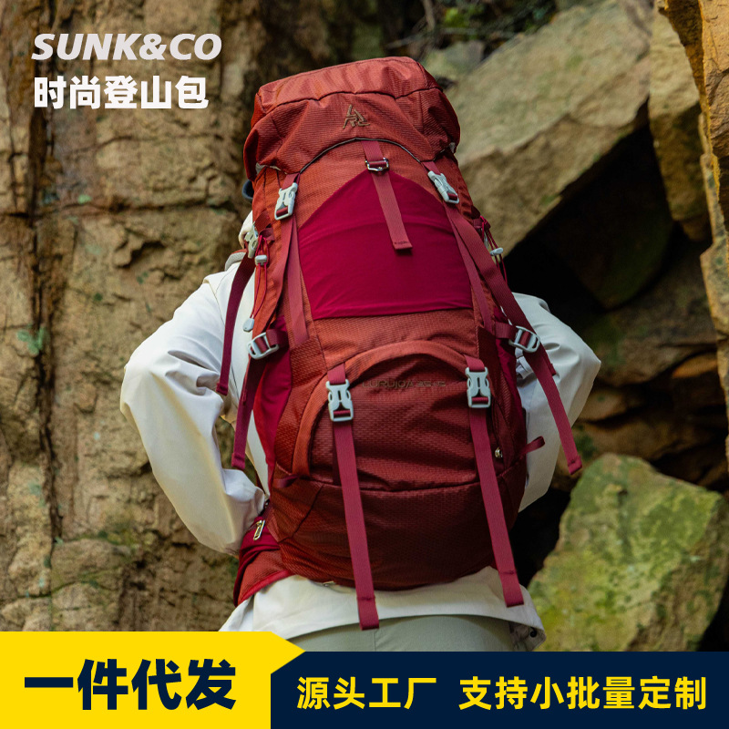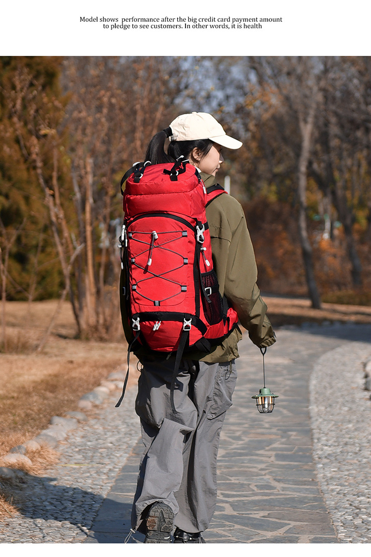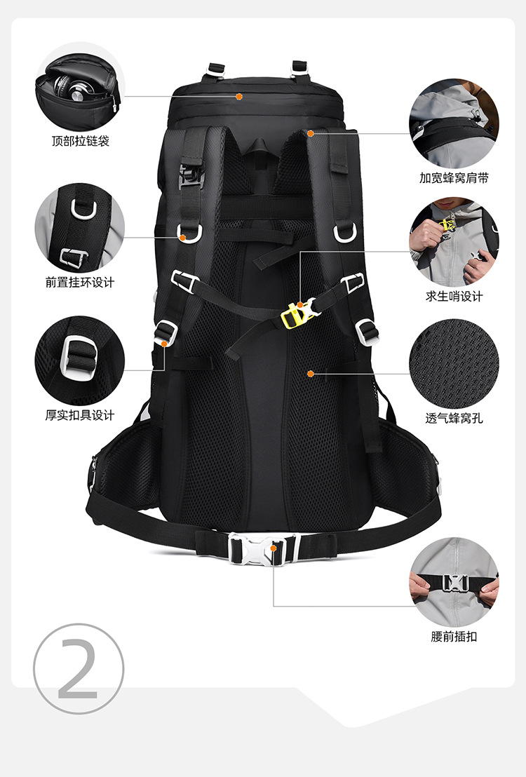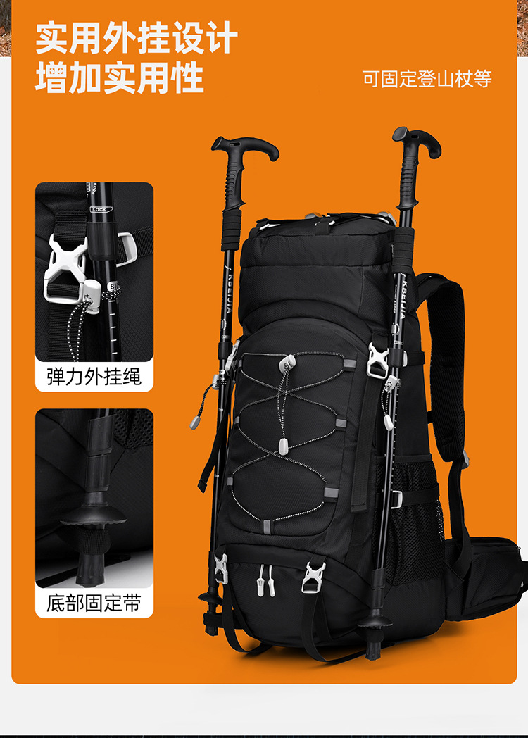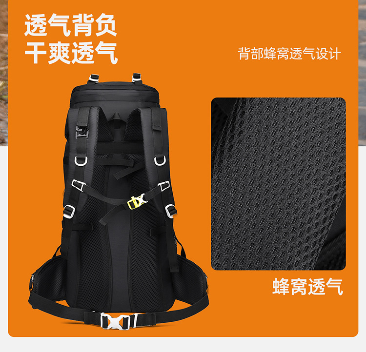 跨境户外徒步野营双肩包悬浮背板可拆卸60L登山包男女款运动背包