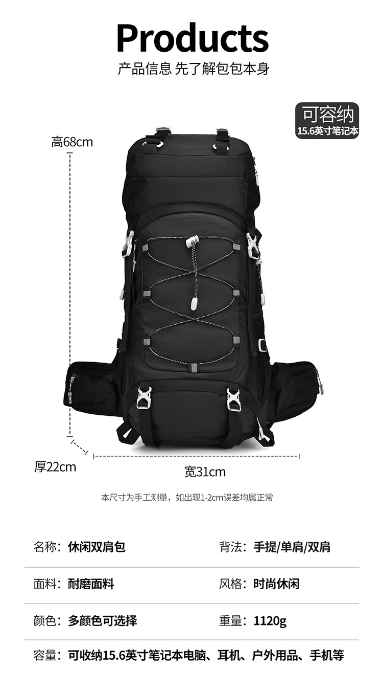 跨境新款户外运动登山包大容量新品背包徒步野营旅行双肩包多功能