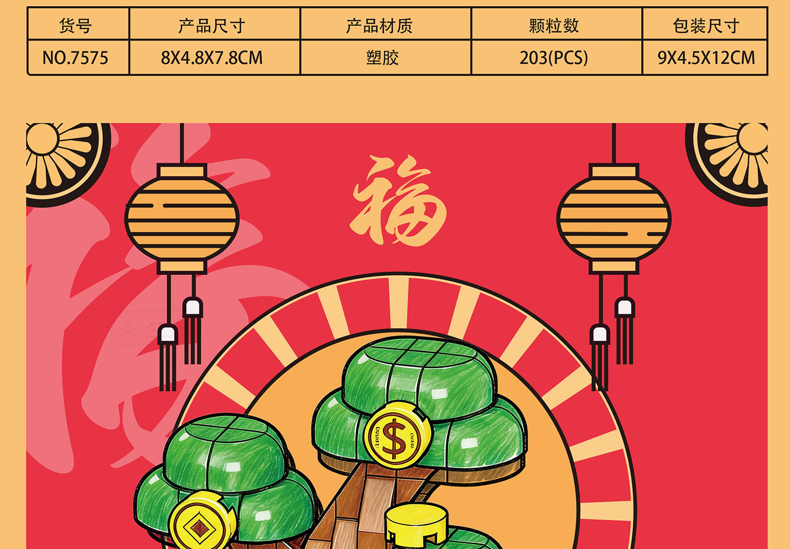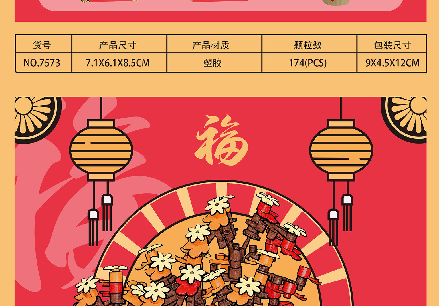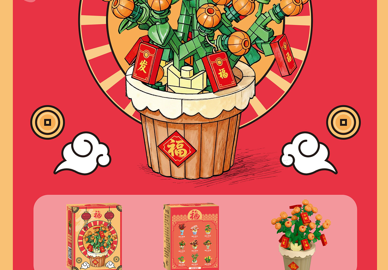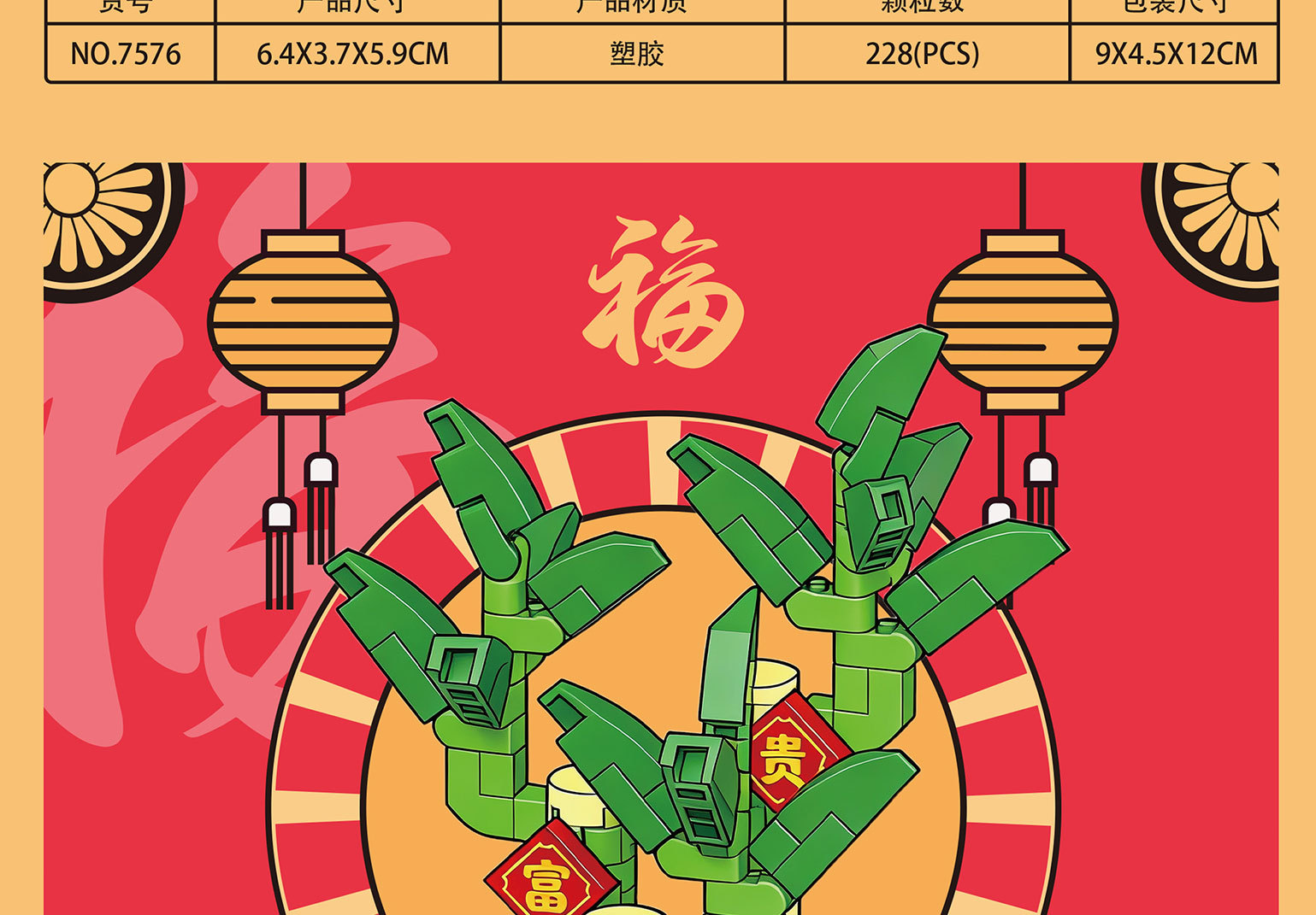 新年国潮桔子发财树醒狮积木兼容乐高摆件马年春节礼物品玩具批发