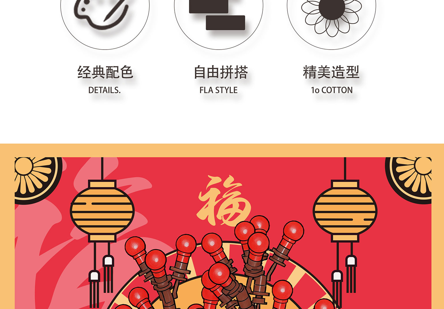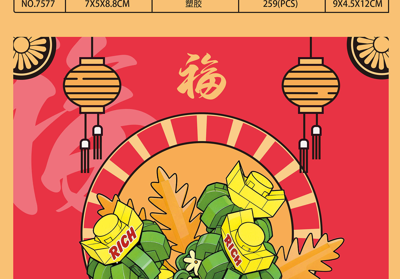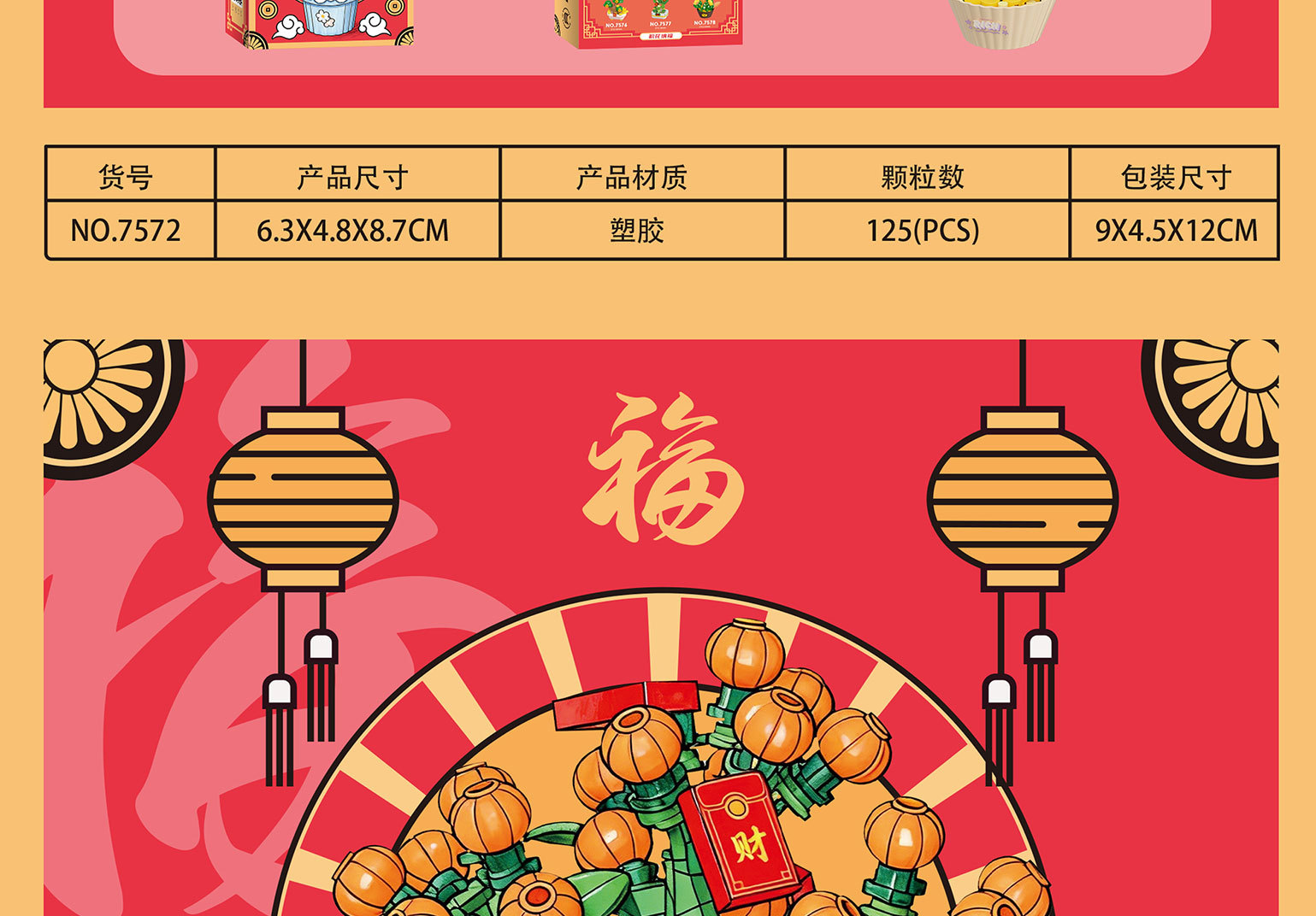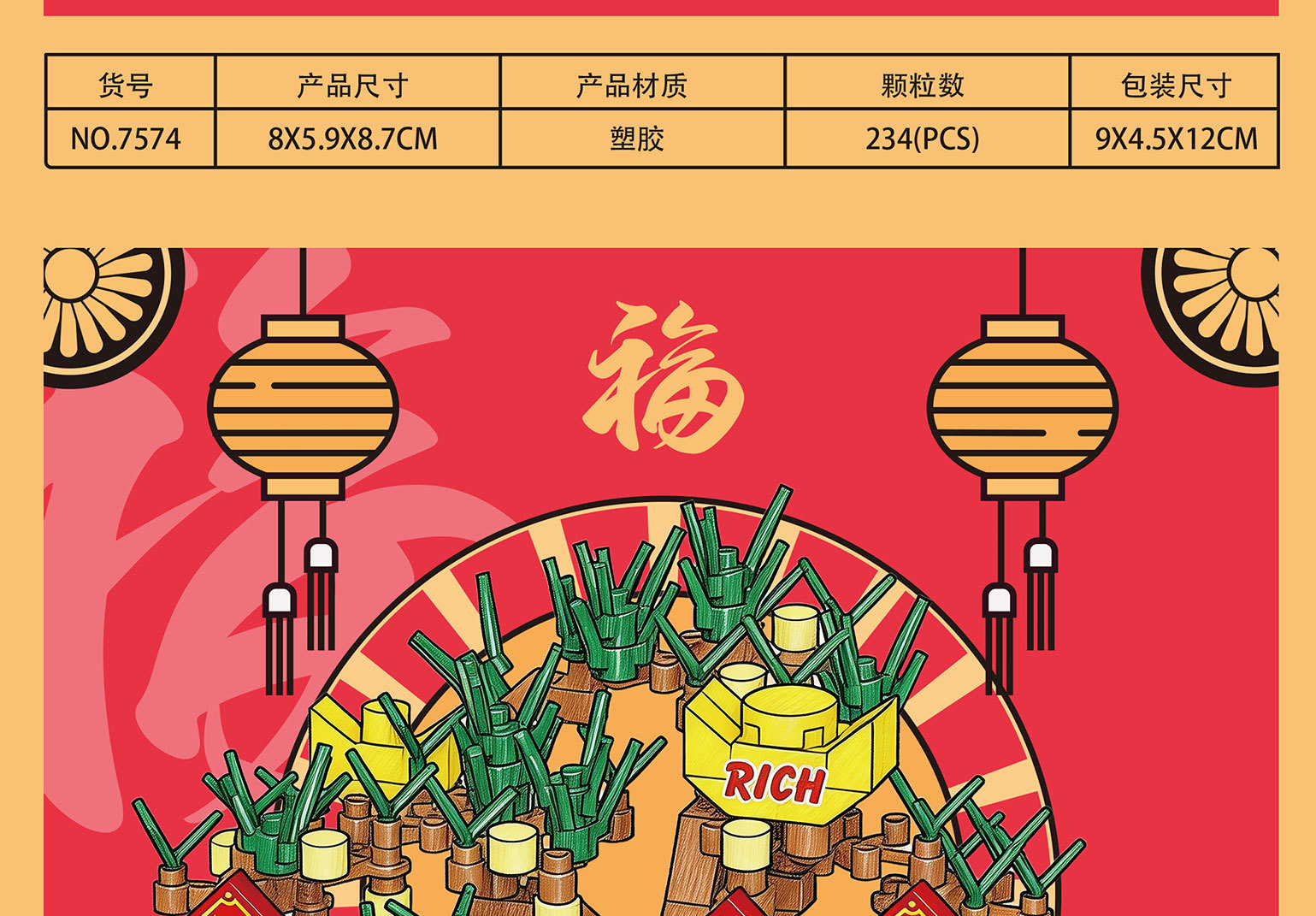 新年国潮桔子发财树醒狮积木兼容乐高摆件马年春节礼物品玩具批发