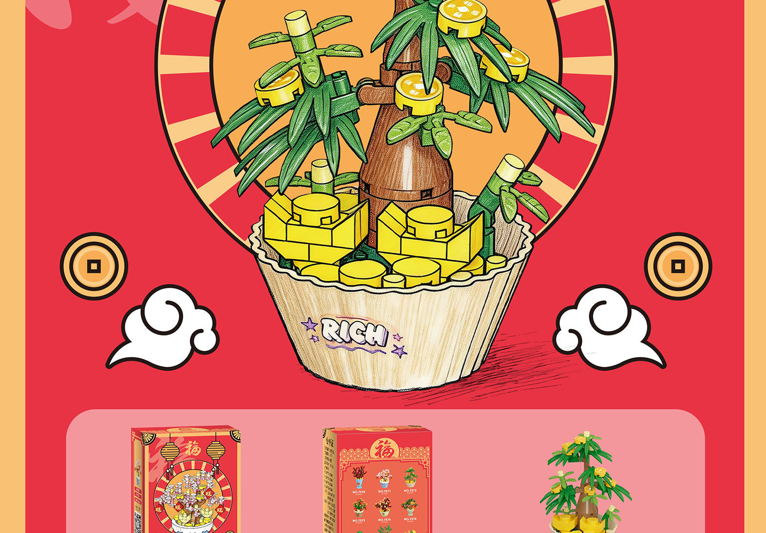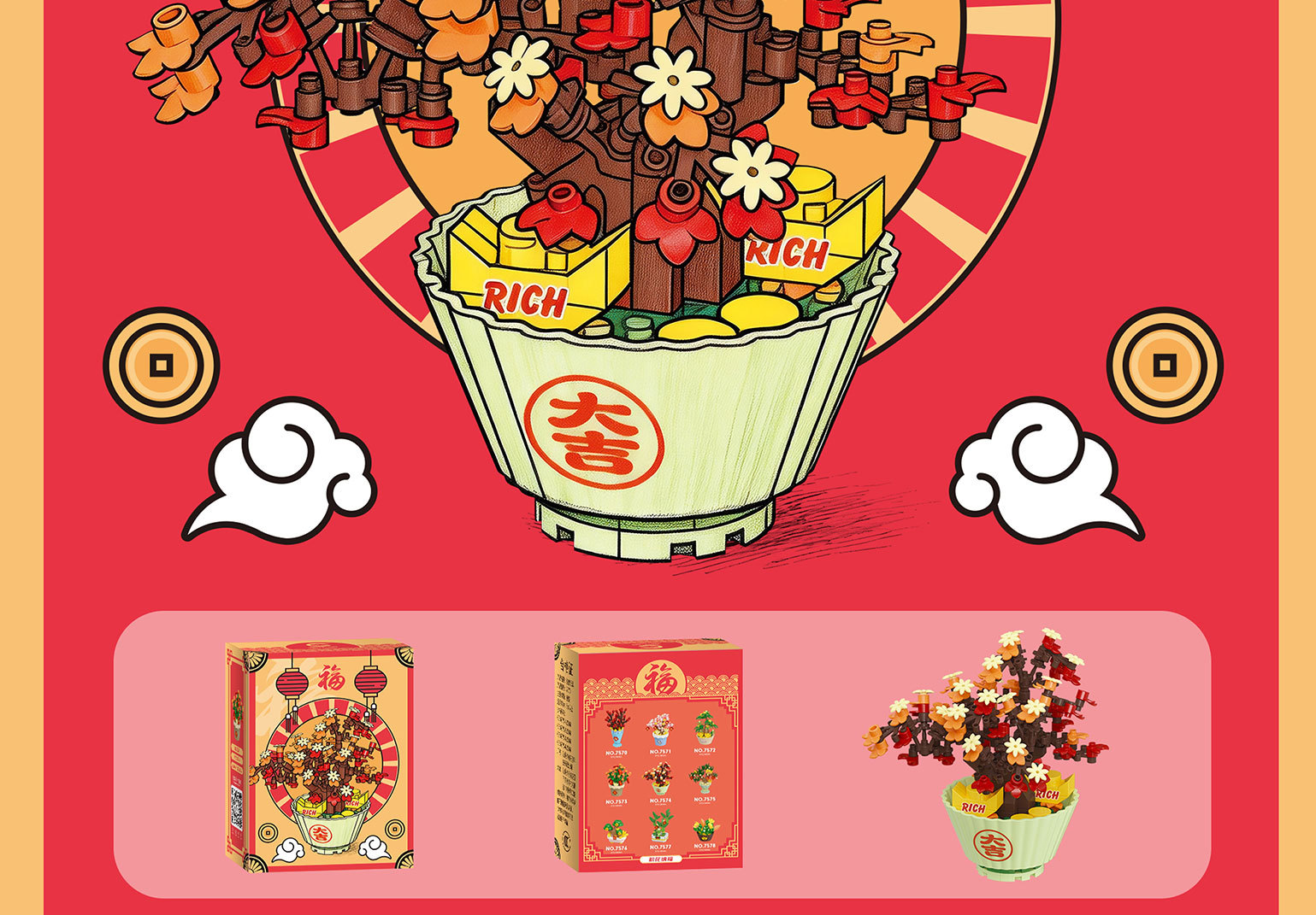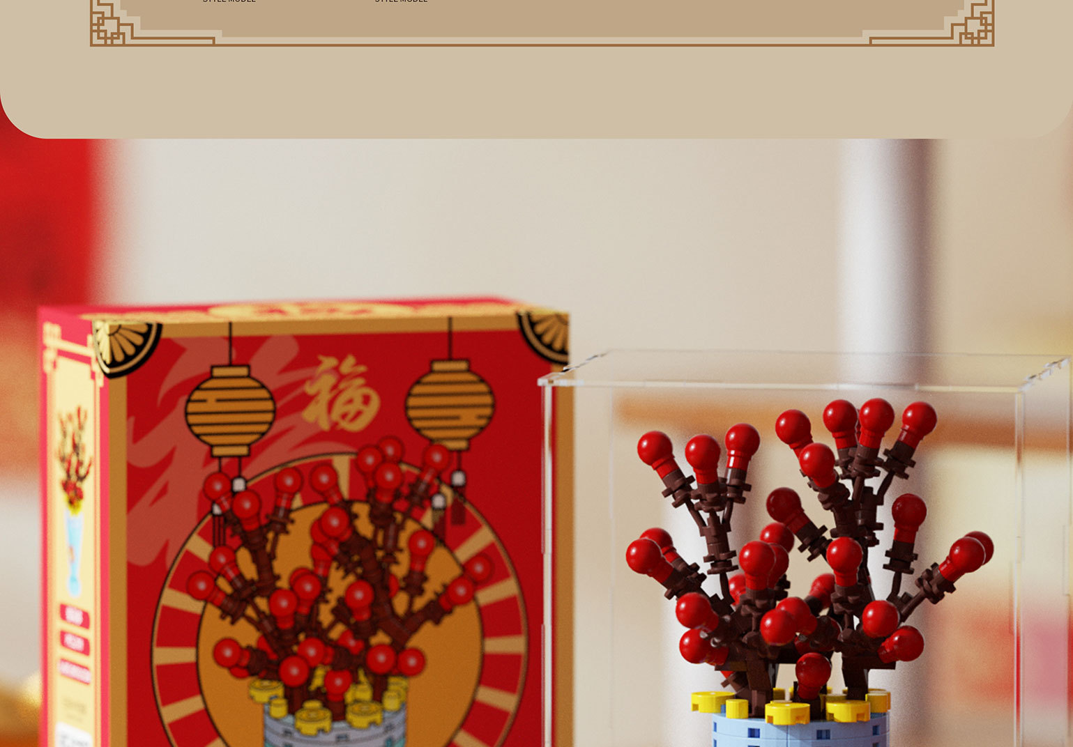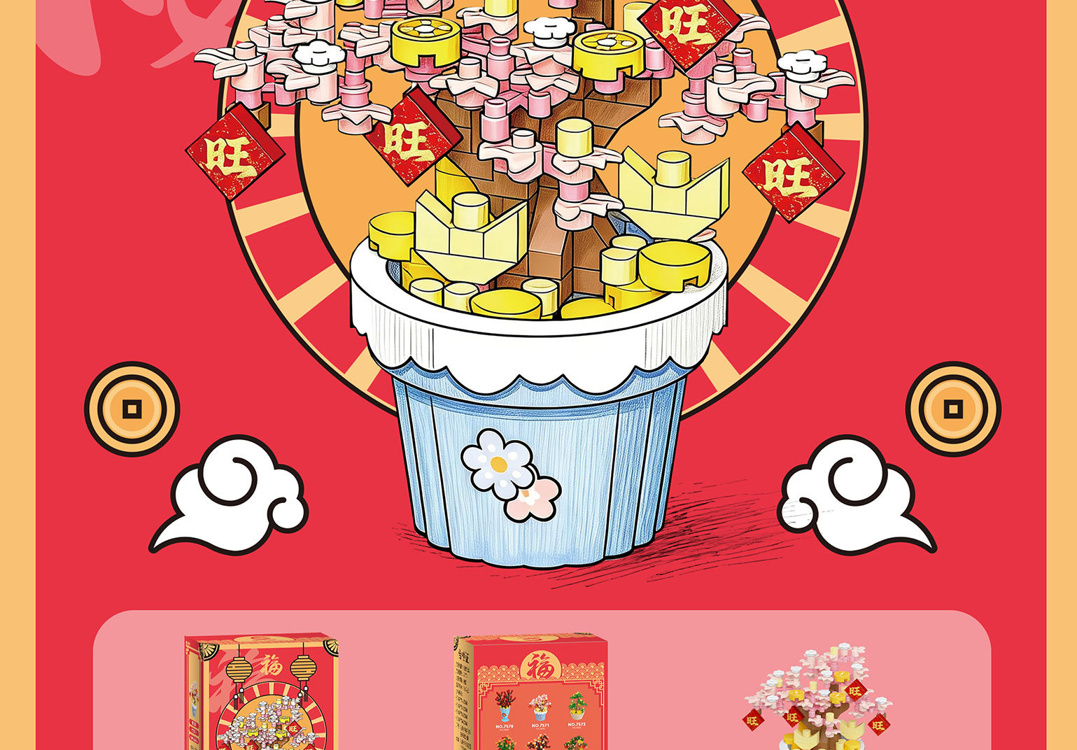 兼容乐高新年积木积花纳福永生花发财树益智拼装玩具摆件新年礼物