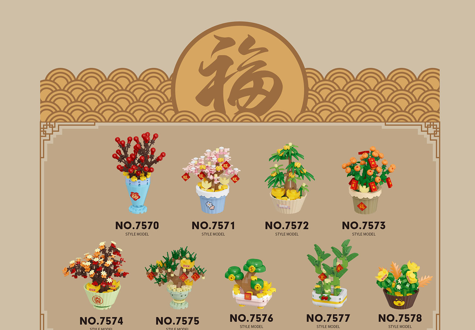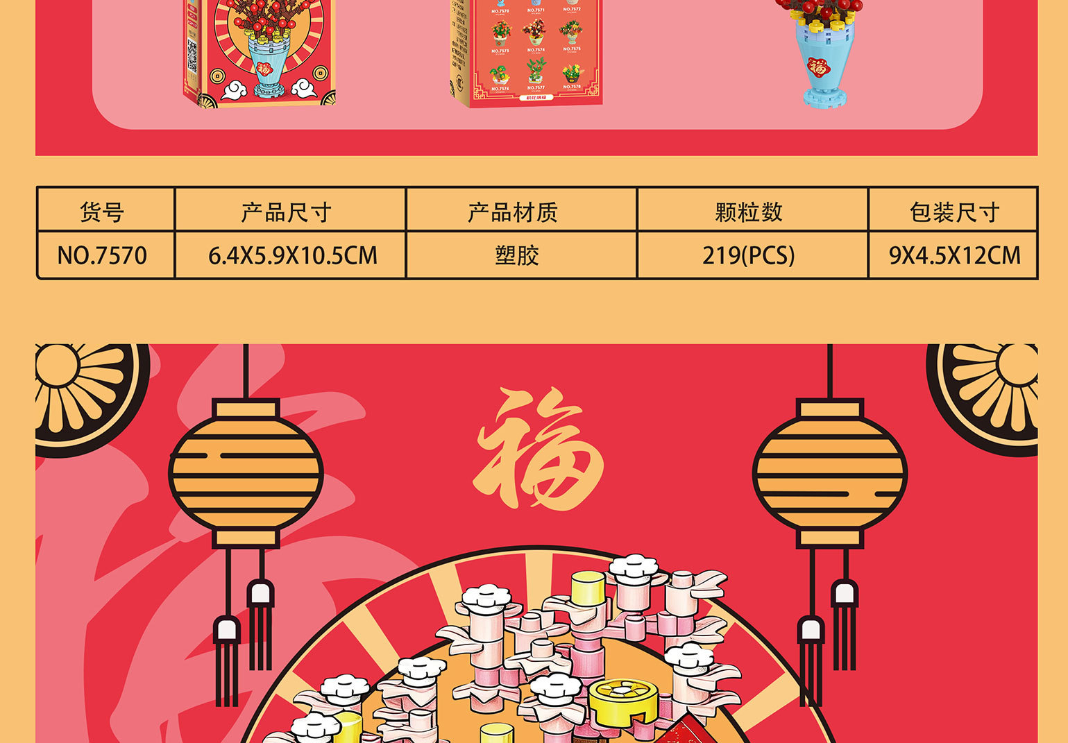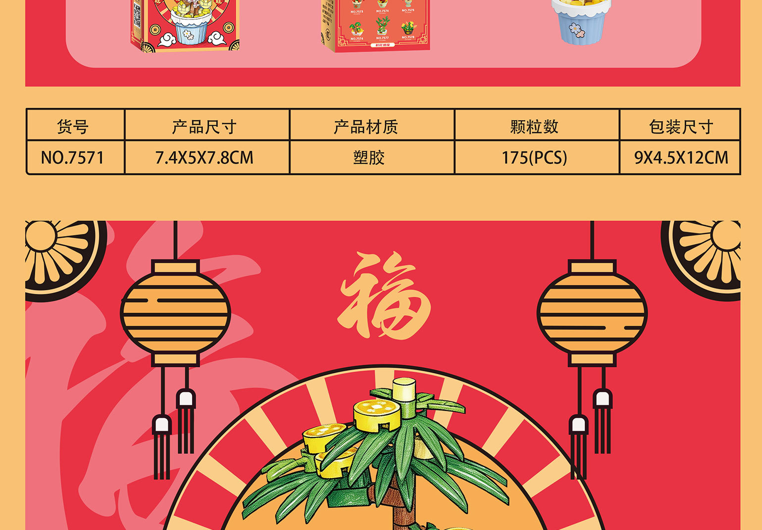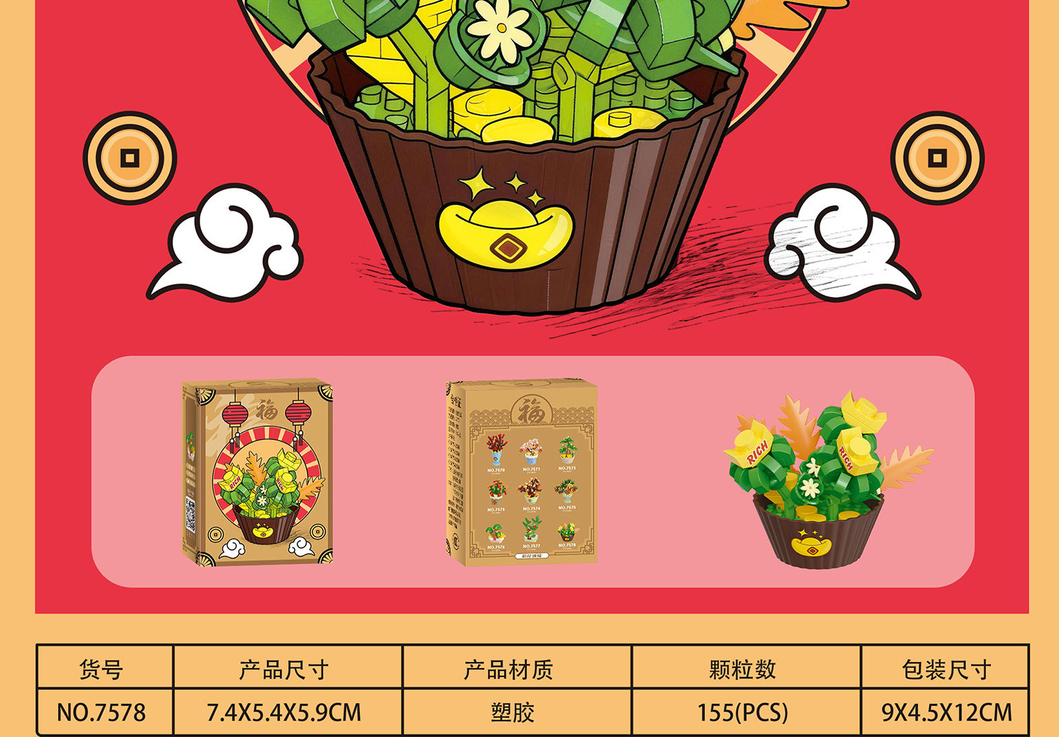 颜色 7570福满多,7571桃花旺,7572发财树,7573金玉满,7574抓财枫,7575迎财松,7576摇钱树,7577富贵竹,7578多宝盆,7570-7578积花纳福礼盒版,积花纳福亚克力盒【92x72x130mm】