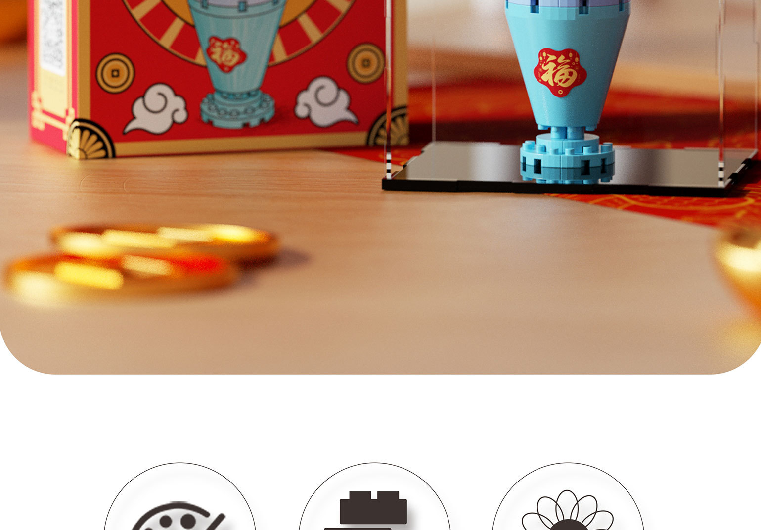 梅肯斯姆K526-K529祥瑞福运宝球微颗粒拼装积木摆件新年礼物