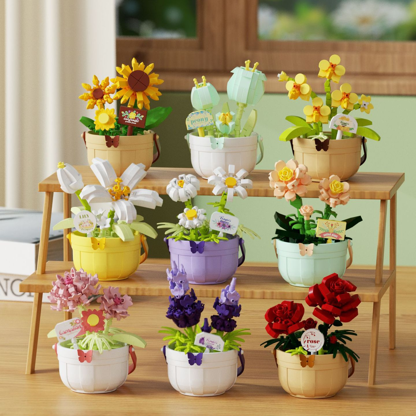 潮乐创7474-7482花篮物语永生花拼装微颗粒积木玩具盆栽摆件礼物