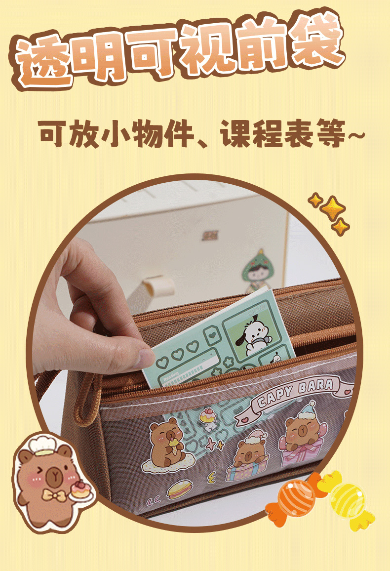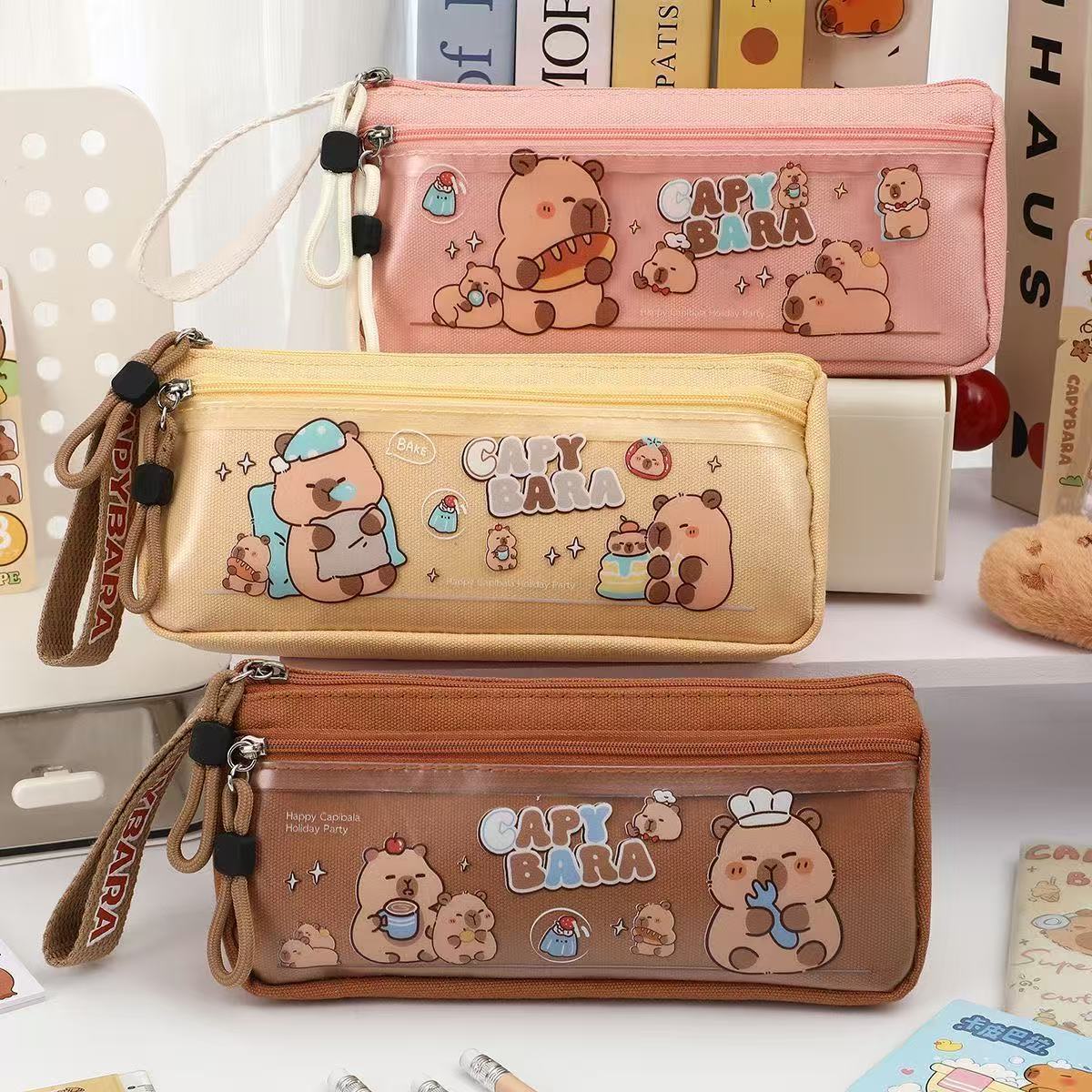 假日卡皮巴拉透明笔袋大容量文具盒学生卡通铅笔盒新款文具袋