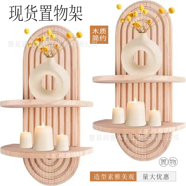 现货 椭圆螺纹实木墙壁置物架玄关装饰蜡烛展示架木制香薰花瓶架