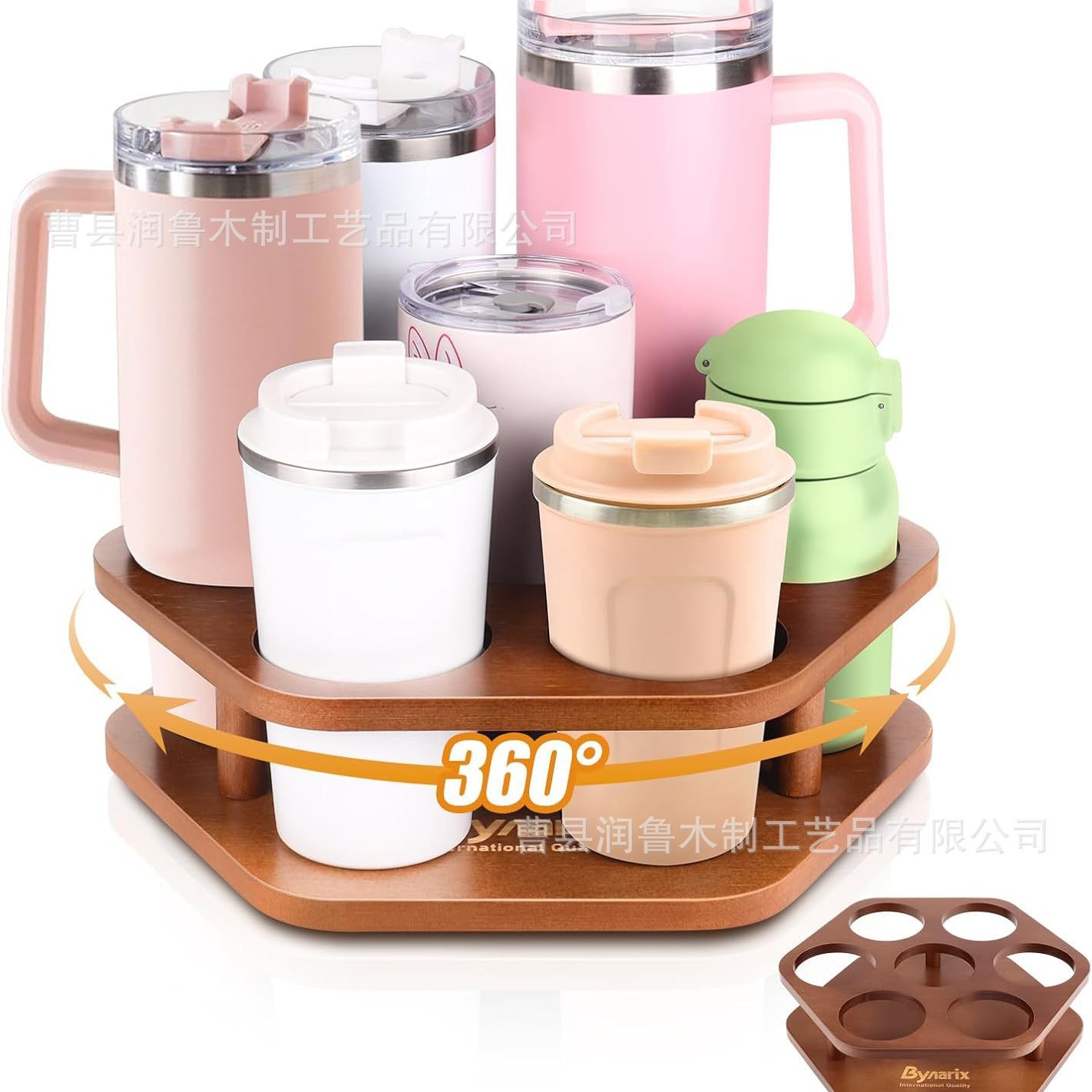 国境を越えた木製保温カップスタンド、木製水筒ホルダー、回転式水筒スタンド、木製水筒ディスプレイスタンド