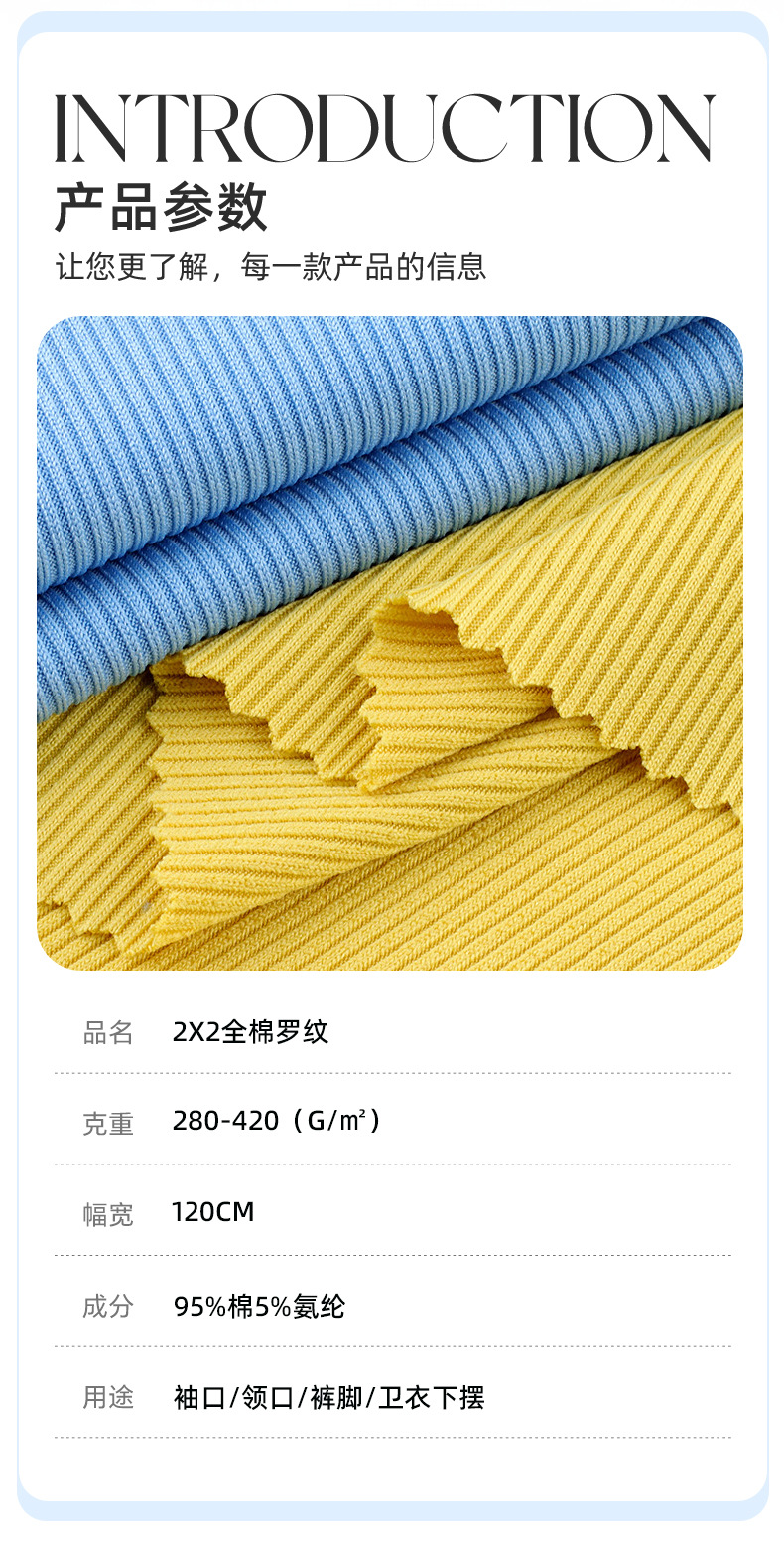全棉2*2弹力罗纹面料 32s下摆袖口卫衣螺纹布 2x2坑条针织罗纹布