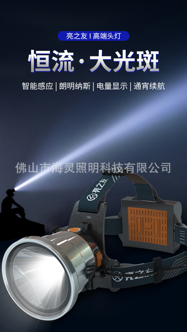 亮之友感应强光充电超亮大功率激光炮钓鱼灯户外通宵超长续航头灯