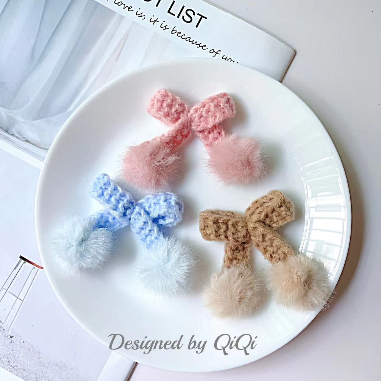 秋冬毛玉ニット蝶結び半製品アクセサリーアクセサリーdiyアクセサリー服バッグ靴頭飾り材料