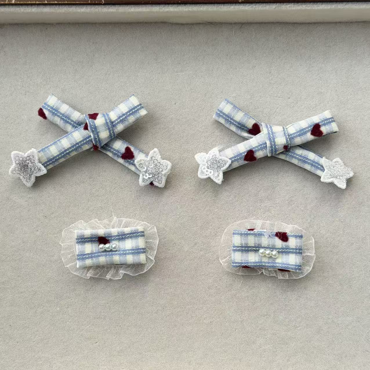 新款海盐蓝格子闪片五角星蝴蝶结配件 发夹手机壳袜子DIY手工材料