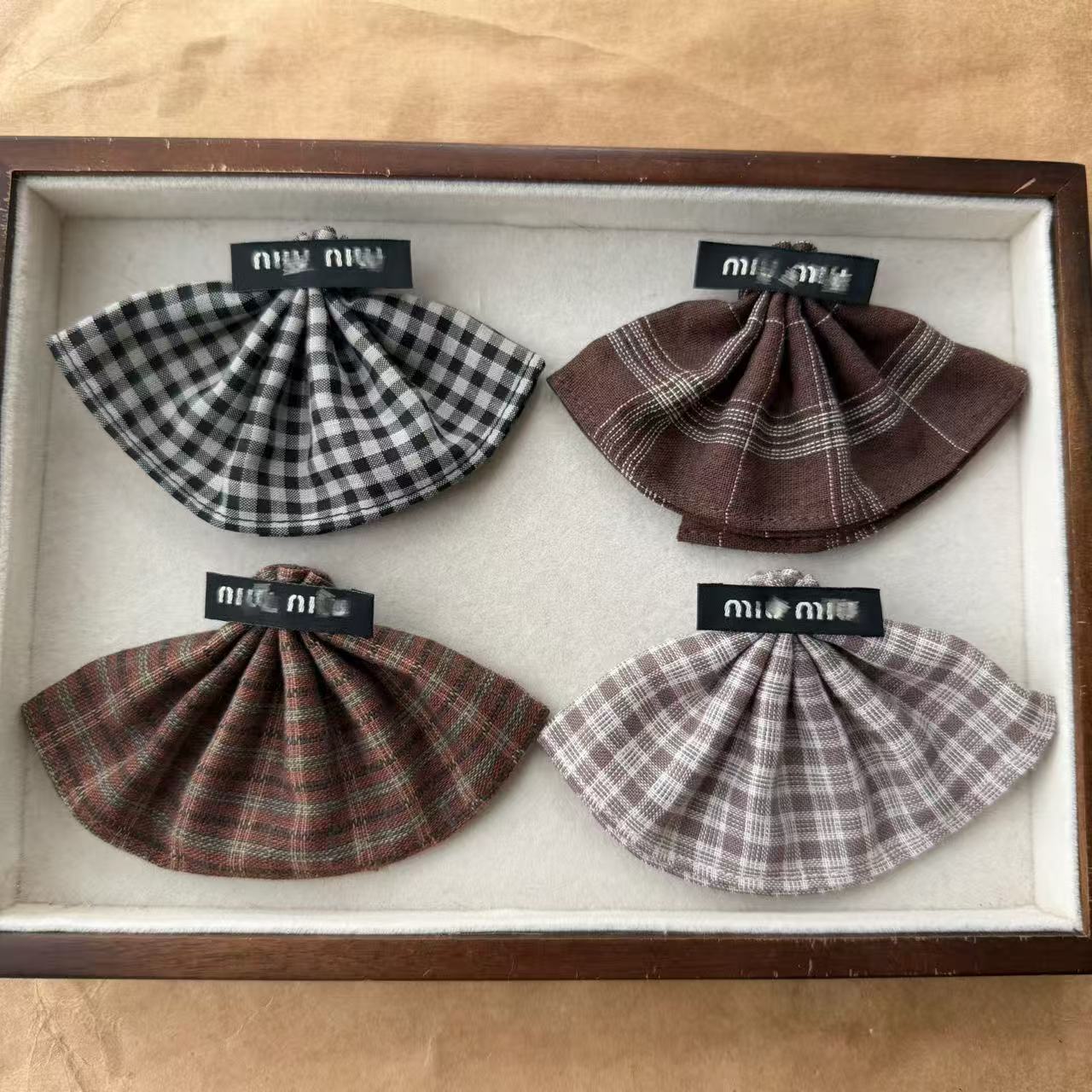 秋冬MIU系格子裙边配饰 发夹手机壳娃衣箱包鞋袜宠物帽子围巾手套