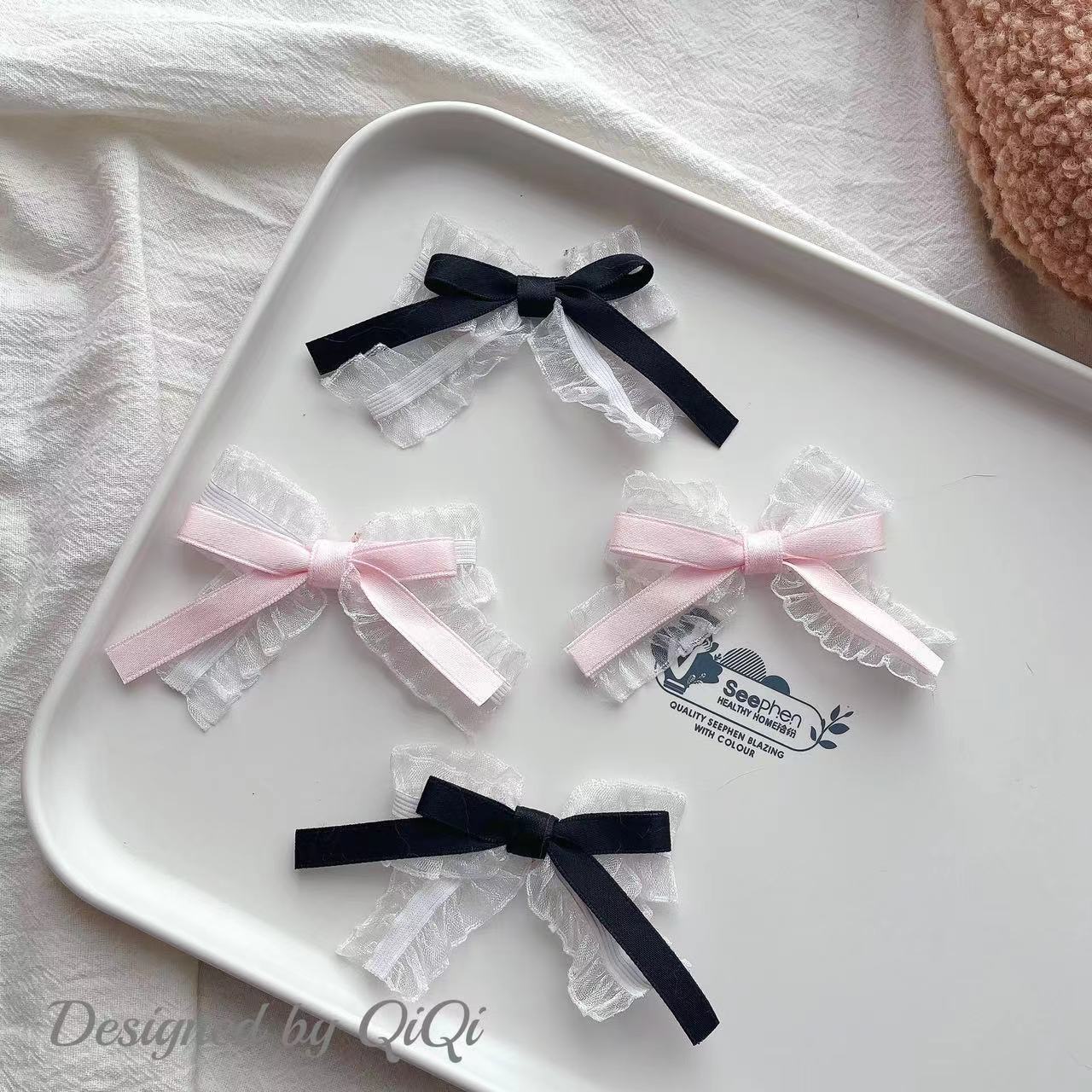 黑白色系波点挂片蝴蝶结纽扣小珠配饰袜子宠物服饰包包发夹公仔配
