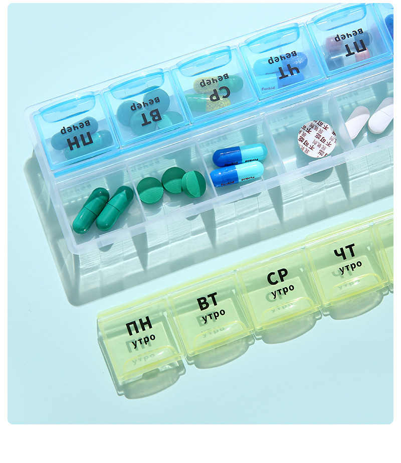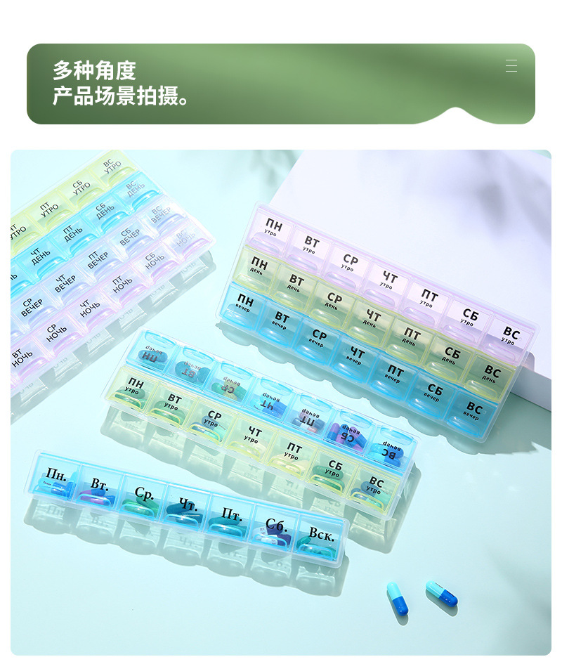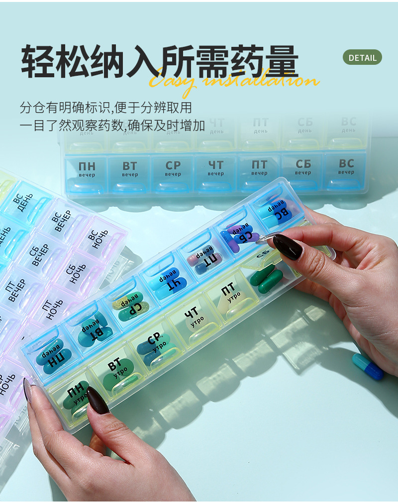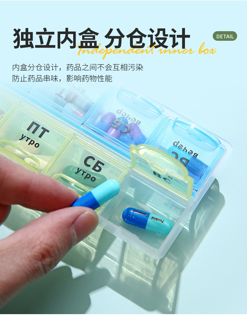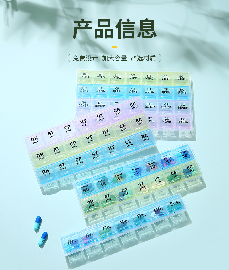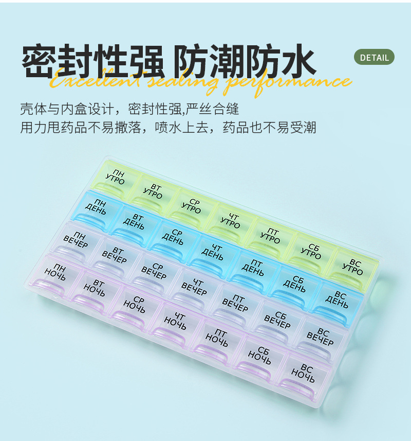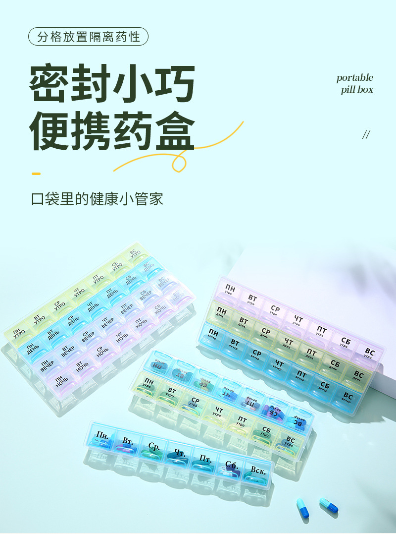 俄语防潮便携式分装药丸盒一周7天俄罗斯波兰药盒密封药盒21/28格