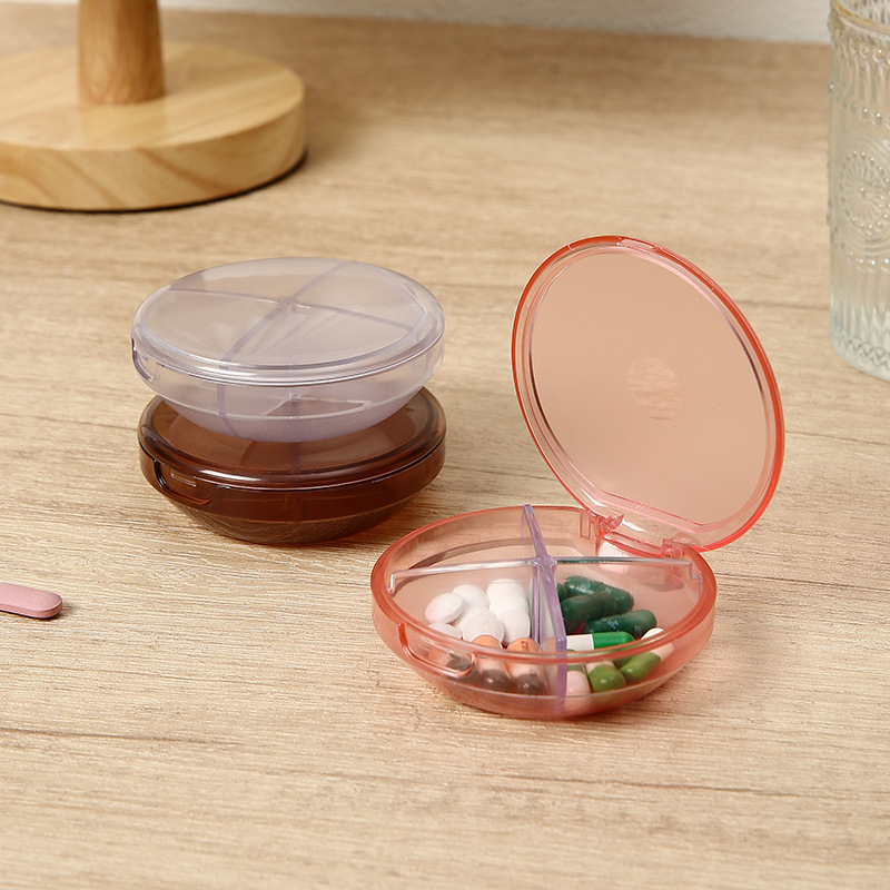 創意的な円形の4つの透明な薬の箱は分解して薬の箱の錠剤を分けて整理して箱の携帯の小さい薬の箱を分けて卸売りします。