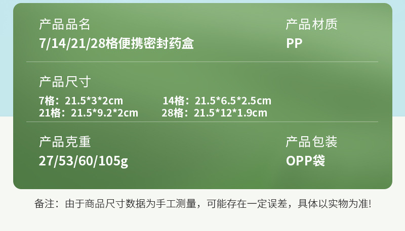 21/28药盒便携式药品收纳盒便携分药器可以用一周分装盒医用
