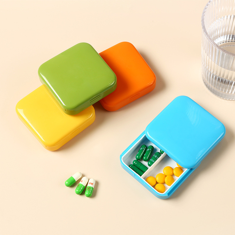 創意携帯ミニ小薬箱押し引き式携帯2格の錠剤箱が小さくて、朝晩薬箱の卸売りを忘れないようにします。