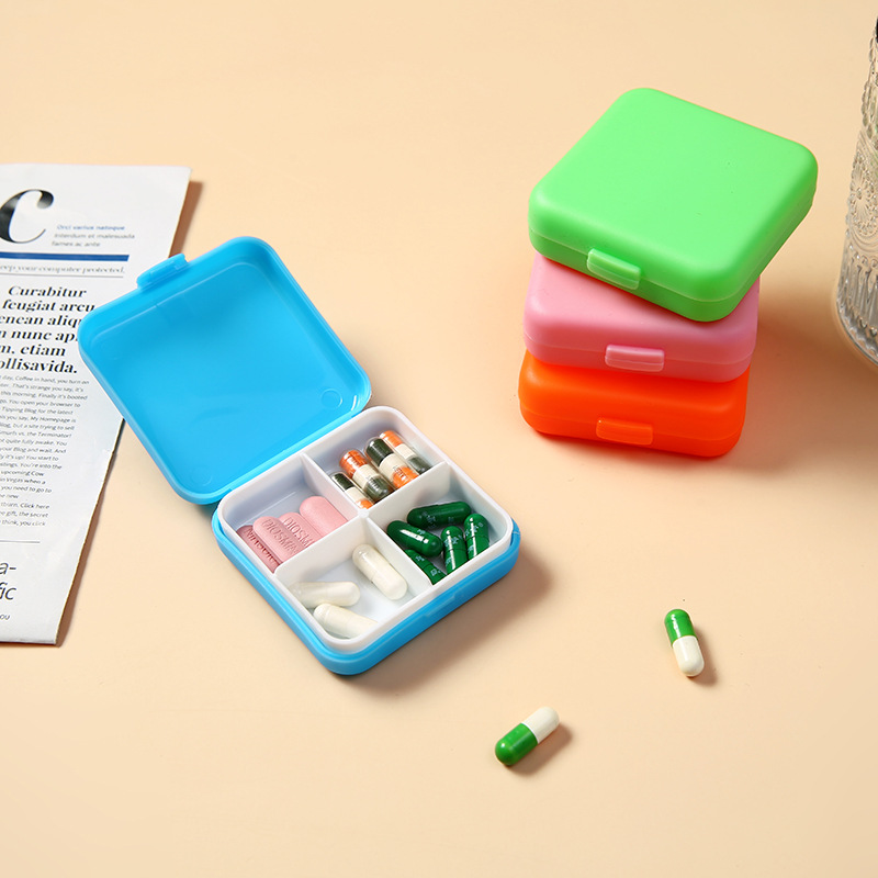 四角い四格のピルの箱の卸売りの広告の小さい薬の箱は分けて防湿の携帯旅行のピルの分類の箱を詰めてロゴを印刷します。