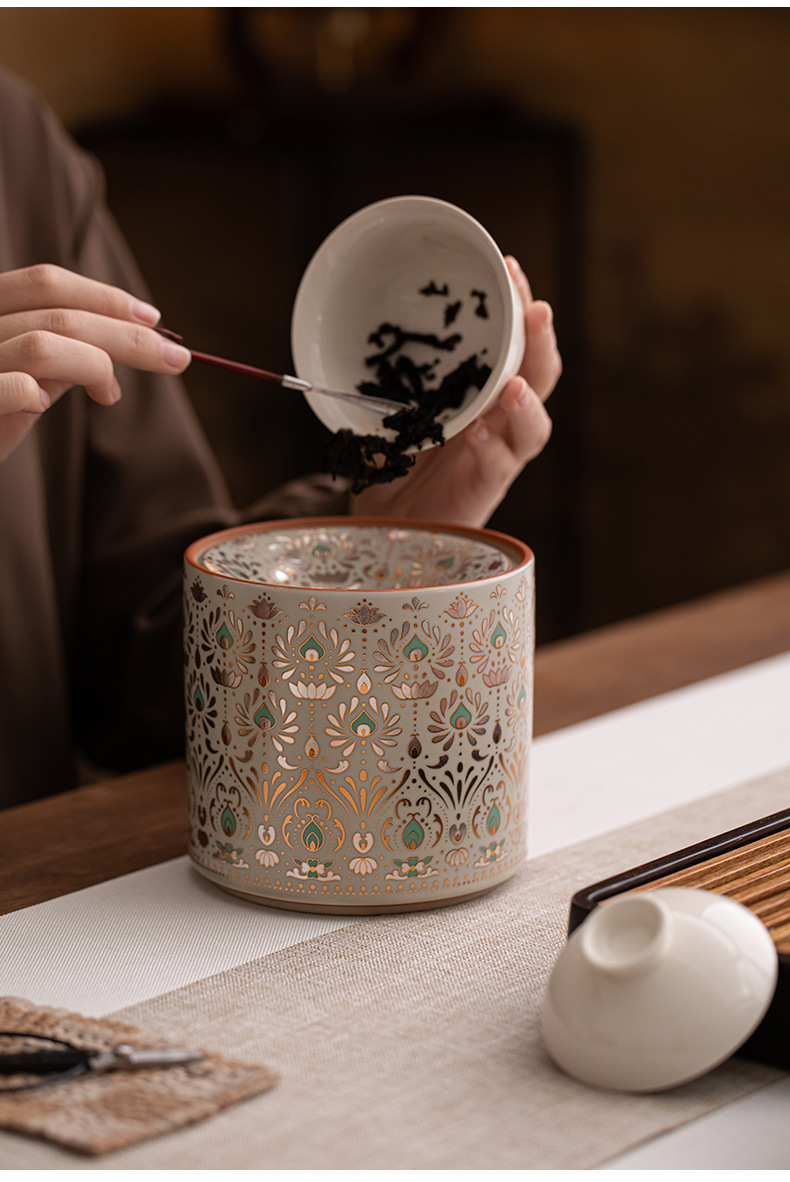 創意国潮覚醒獅子茶葉缶宮廷風招財置物家庭用密封缶キャンディー缶陶磁器缶お土産