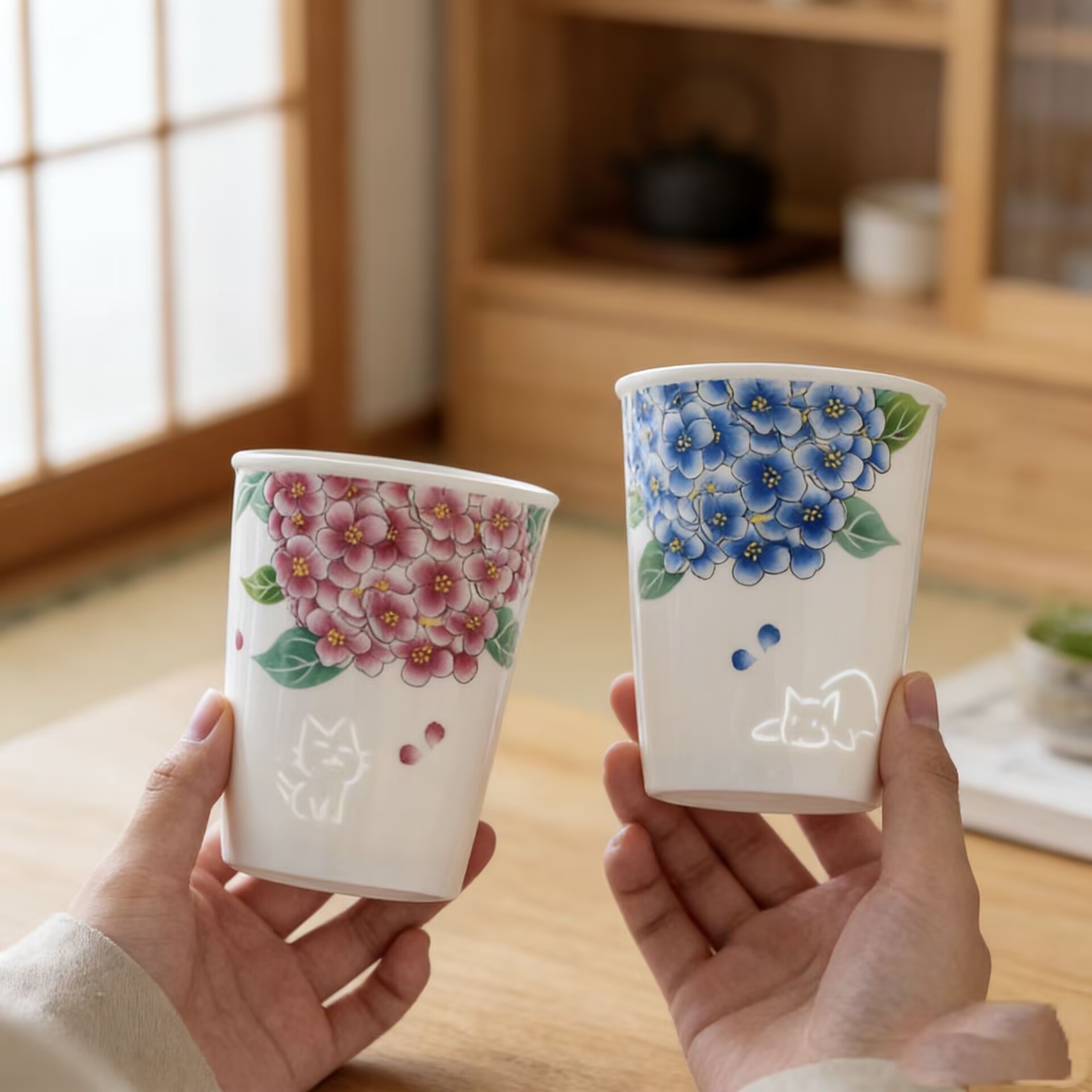 绣球花玲珑小猫镂空茶杯陶瓷办公杯新款可乐马克杯家用大容量水杯
