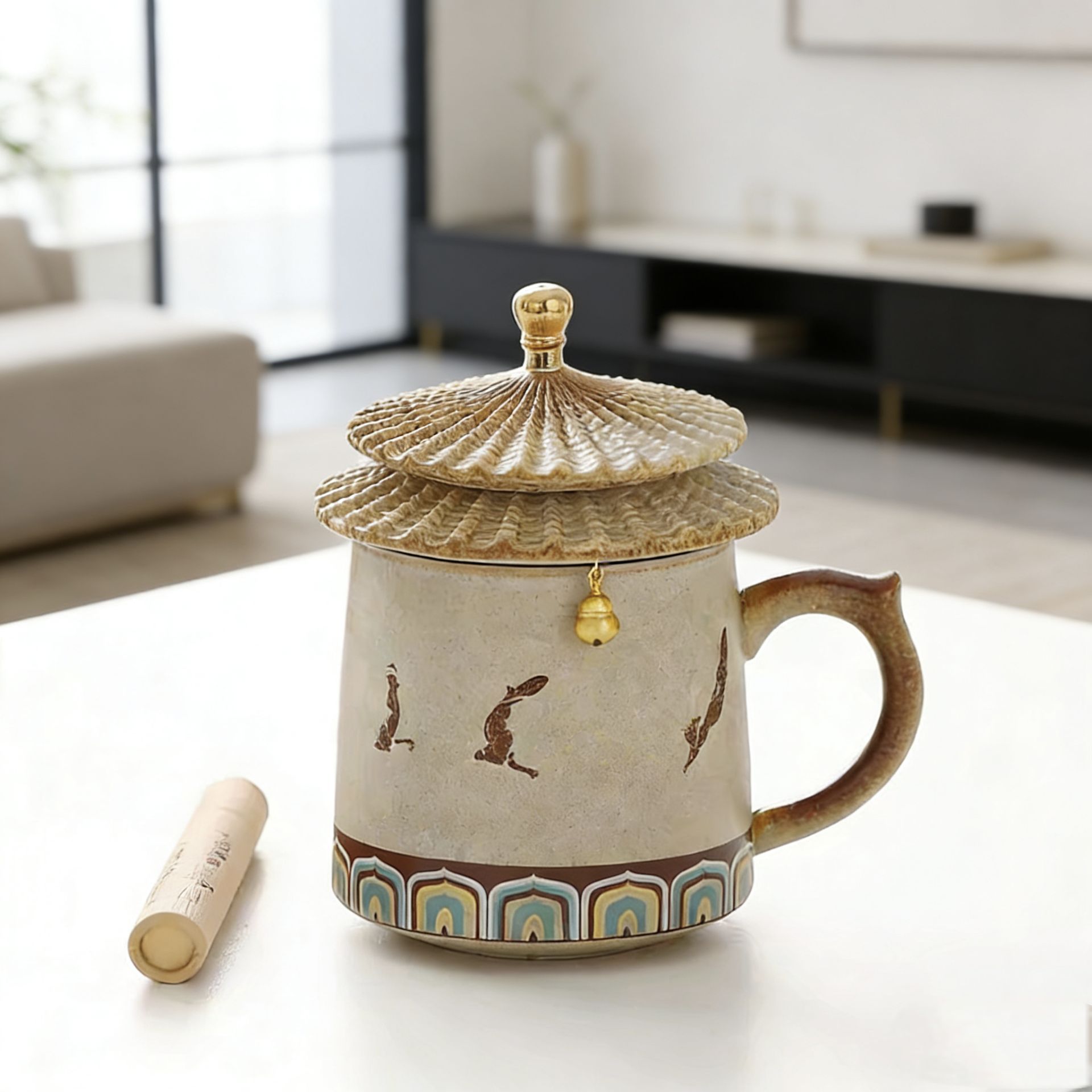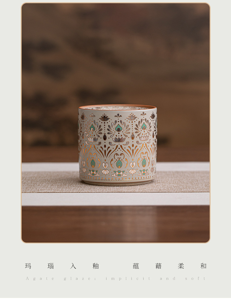国潮敦煌故宫文创陶瓷杯 带盖茶水分离可焚香 办公泡茶马克杯批发