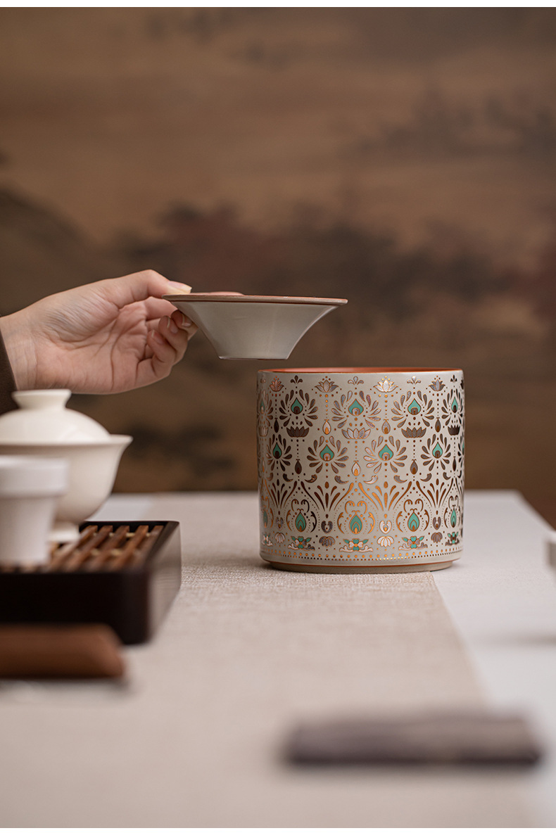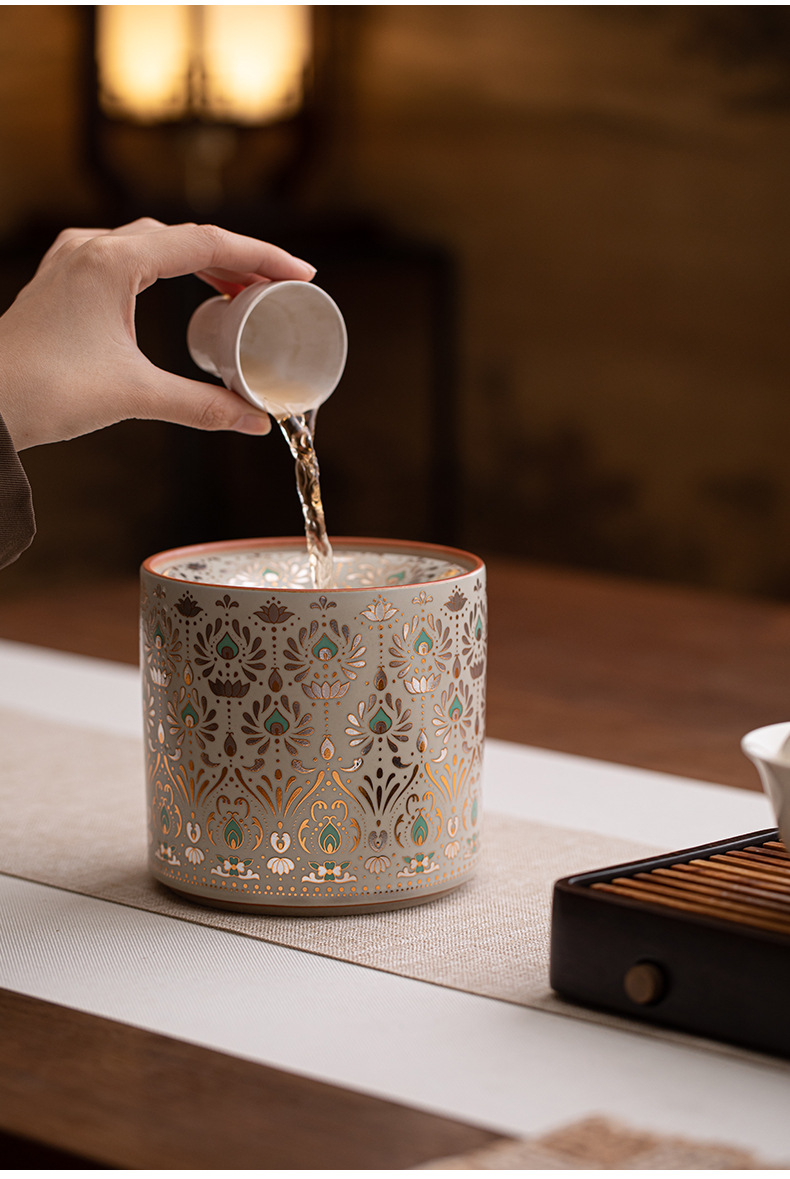 草木灰復古建水茶滓桶家庭用陶磁器茶滓筒水孟工夫茶具トランペットカップ洗浄廃水筒