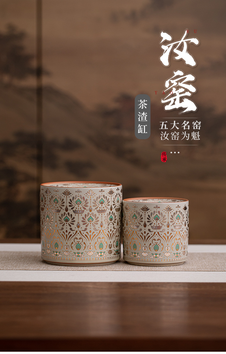 汝窑茶渣缸家用陶瓷茶洗缸茶水桶废水缸茶具配件茶道零配茶渣桶