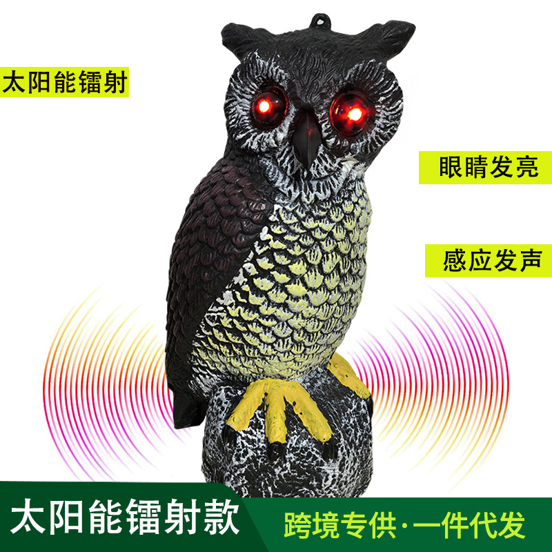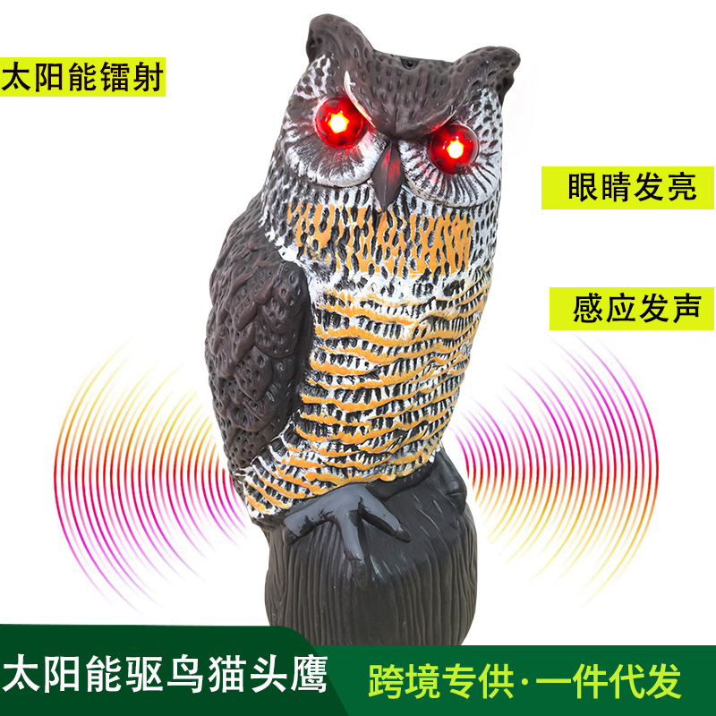 太阳能仿真猫头鹰发光发声果园农田驱鸟神器PE户外庭院装饰猫头鹰