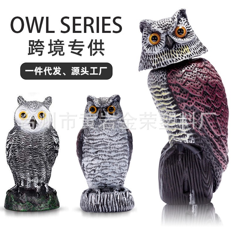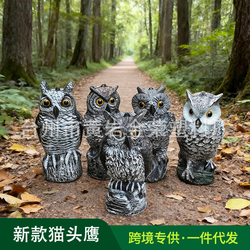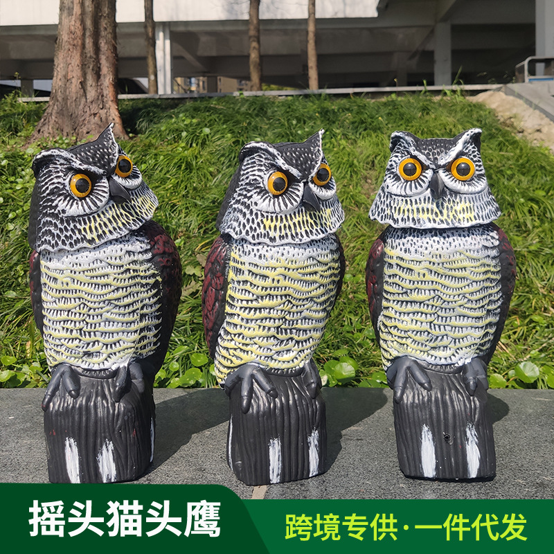越境配送対応、首を振る模擬フクロウの置物、ネズミを追い払う、鳥を怖がらせる、屋外用樹脂製装飾品、ガーデニング専用