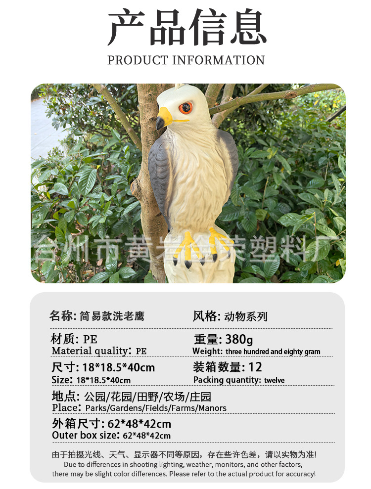 厂家直销塑料仿真老鹰Eagle户外打猎诱饵园林摆件装饰PE美国老鹰
